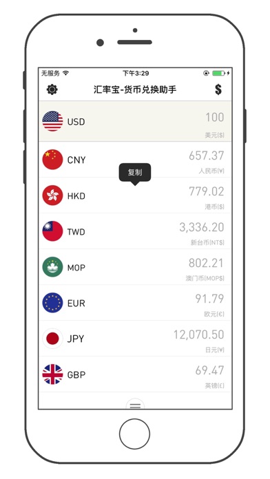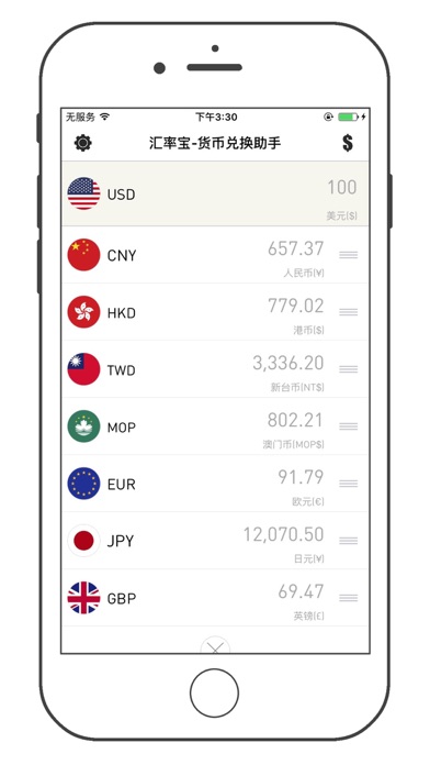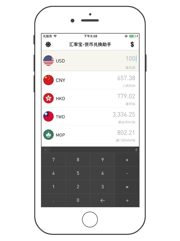 汇率宝-货币兑换助手 是一款实时汇率查询软件,提供 170 多种常用货币及贵金属之间的现汇买入/卖出价、现钞买入/卖出价、银行折算价、等即时信息以及历史汇率的查询,简单极致的操作体验。 [汇率计算器] 支持货币价格的混合运算连运算; [当日走势] 提供汇率当日走势,为做短期货币投资理财的用户提供可视化参考; [历史汇率] 提供汇率历史走势,为做长期货币投资理财的用户提供可视化参考; [汇率实时性] 用户的每一次查询都是获取最新的汇率数据; [节省流量] 汇率数据结果服务器压缩传输,基本不耗流量; [数据可靠] 数据源于雅虎金融; [多功能性] 货币数值复制、货币符号、自动清空、自定义排序添加删除、货币国家名称智能搜索、长按运算符号合运算等。Apple 已更新此 App 以显示 Apple Watch App 图标。 修复BUG