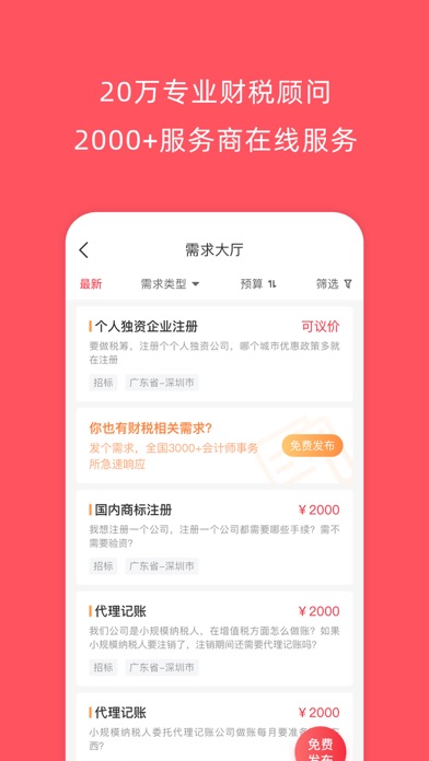 成功财税,是注册会计师协会指定合作财税平台,携手会计师事务所和资深会计,为企业提供从工商注册到财务审计的一站式财税服务,为会计打造财税知识社区,以“专栏、问答、培训”等形式帮助会计个人成长,帮助资深会计实现知识变现和技能变现。 -财税商城 品质服务- 八省注协联合推荐,工行托管交易资金,一站解决企业财税需求; 服务类型全,包含工商服务、财税服务、知识产权、财审税审、高新申报等; -需求大厅 定制服务- 企业自主发标、自主定价,优质财税商家为企业量身定制解决方案; 伴随企业发展,为不同发展阶段的企业提供高端定制化财税服务; -知识社区 成长服务- 热点资讯、政策解读、问答、学院、1对1咨询多渠道帮助会计个人成长; 资深会计写专栏、录课程、答疑解惑、承接业务,实现知识变现和技能变现; 如果您有意见建议和合作需求,欢迎联系我们: 官方热线:4001-76-86-96 官方微信:成功快车 公司官网:www.cgkc.com- 优化体验,修改部分文案。 - 添加注销账号流程,更好保护用户隐私。