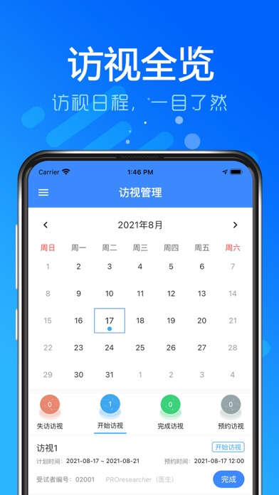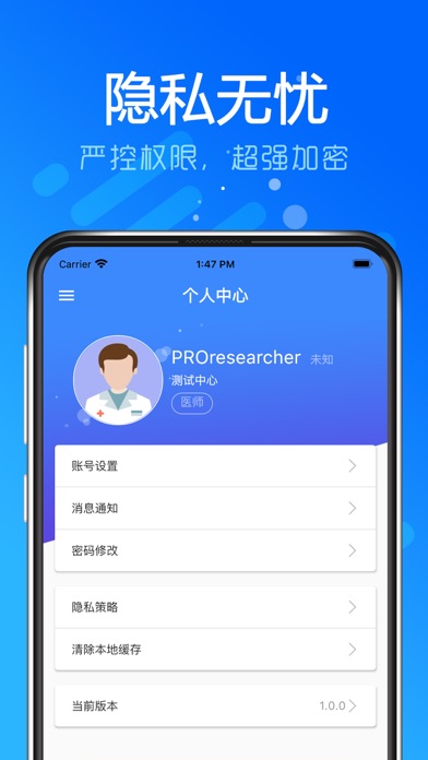 研究者APP 是用正医药研发的全方位临床试验研究软件套件中的研究者终端,可以帮助研究者全盘掌控受试者的访视情况、试验参与情况,并可在保证隐私的情况下与受试者进行沟通,提供文字,语音和视频等多种沟通手段,还可以帮助研究者与CRA进行监查发现问题的沟通。此外还提供访视/数据录入提醒、面向受试者的问卷调查、快速扫描录入受试者实验室检查数据等实用功能。功能和体验升级优化 修复部分bug