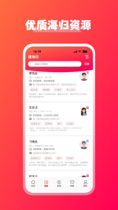 【海归】智能推荐符合职位的海归人才,系统筛选更智能。