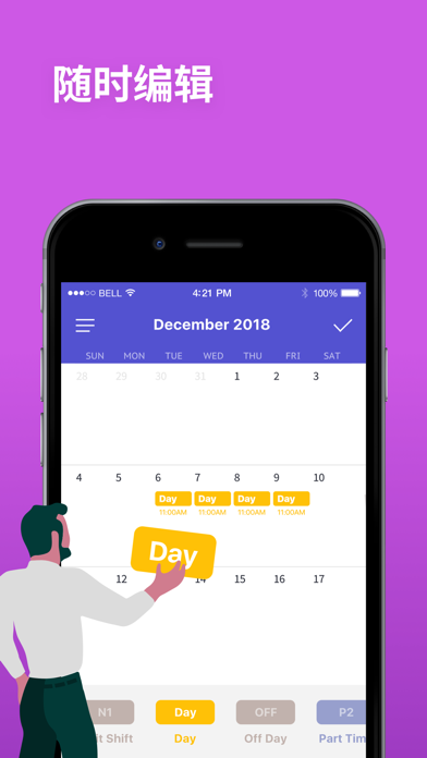 关注自己的排班变得非常简单! Shift Days 当你的工作班次一目了然。 适用于 iPhone 及 iPad,清晰易用的日历让您时刻轻松掌握每天的工作日程安排,一次点击即可添加或移除排班。 Shift Days 专为轮班工作者设计,让您在屏幕上了解整个月的排班情况,使日程安排更加简便。 主要特点: - 可为班次分配颜色和缩写,让您一目了然 - 为快速轮班应用提供直观接口 - 为每日行程快速添加备忘录 - 班次 Widget 让您无需打开应用即可查询下一次轮班时间 - 与朋友和家人轻松分享日程安排 - 通过 iCloud 在您的 iPad 和 iPhone 间实时同步 额外功能: - 查看每天两个班次。 - 为您的日历添加无限制的班次。 - 只需点击日历即可更改您的班次安排。 - 通过复制和粘贴班次来快速安排日程。 - 只需简单几步即可通过轮班规则填满日历。 - 获取班次事件的推送通知。 - 四种不通的星期编号规则(1-2、2-1、1-52、0-51)。 - 自定义每星期的起始日。 - 通过电子邮件发送您的轮班日程。 - 分享每月排班日程(通过电子邮件地址/手机短信/打印机/相册) Shift Days 直观的轮班管理界面让您免受日程管理之苦。 此应用非常适合不定时工作以及在轮班工作的人士。 使用 Shift Days 的人士包括: - 护士 - 医生 - 紧急事项工作人员 - 警察 - 消防员 - 军队 - 辅助医护人员 - 保安 - 清洁工 - 调酒师 - 记者 - 学生和打工者 - 出租车及网约车司机 - 服务员 - 卡车司机 - 建筑工人 - 守夜人 ---- SUBSCRIPTION PRICING & TERMS Shift Days is free to download. Shift Days Subscription gives you unlimited access to our premium content and features. - Shift Days's auto-renewing subscription options are $2.99 monthly or $24.99 annually - This price is for United States customers. Pricing in other countries may vary, and actual charges may be converted to your local currency depending on the country of residence. - Payment will be charged to your iTunes Account at confirmation of your subscription - Subscription automatically renews unless auto-renew is turned off at least 24-hours before the end of the current period - The account will be charged for renewal within 24-hours prior to the end of the current period, and at the cost of the chosen package - Any unused portion of a free trial period, if offered, will be forfeited when the user purchases a subscription to that publication, where applicable. - Your subscription automatically renews unless you turn if off in Account Settings 24+ hours before the end of the billing period. - You can turn off auto-renew at any time from your iTunes account settings, but refunds will not be provided for any unused portion of the term. [ Privacy Policy ] https://www.iubenda.com/privacy-policy/77398254 [ Terms of Service ] https://www.iubenda.com/terms-and-conditions/77398254 [ Support ] Contact at 'support@pixo.co'轻松管理您的工作生活 — 斯波克:排班日历 本次更新: • 新增群组日历功能 —— 现在您可以将日程与家人、朋友或同事共享。 • 可创建并加入共享日历,保持日程完美同步。 • 我们还对性能进行了优化并修复了若干错误,使用体验更流畅。