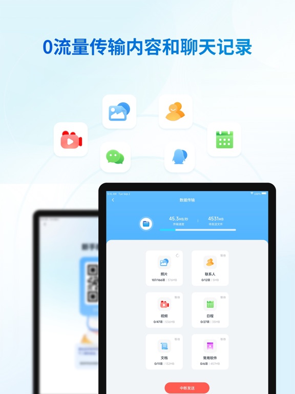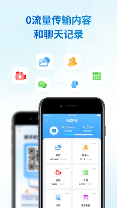 我是您全新的换机伙伴,我的目标是助您一键实现手机数据的无缝迁移。在您换新手机的时候,我们将确保您的数据安全,快速,方便地转移到新手机上,而且无需消耗任何流量。 主要特点: 1.一键迁移:用户可以非常方便地将旧手机的数据一键迁移到新手机上,无需任何复杂操作。 2.无需流量:所有的数据迁移全程无需消耗流量,换机助手可在无网络的情况下快速迁移您的数据。 3.类型广泛:支持各种类型的数据迁移,包括联系人、短信、照片、视频、应用程序、音乐、日程、通话记录等。 4.设备兼容性强:支持各种型号的手机,轻松实现跨系统的数据迁移。 5.数据安全:在整个数据迁移过程中,我们将确保您的数据安全。我们不会记录用户任何数据,尊重和保护每一位用户的数据隐私。 6.用户友好:界面简洁,易于操作,无论你是新手还是专业人员,都能够简单快捷地使用。 免责声明:建议在开始数据转移前,用户应先备份所有数据,以防意外情况发生。如有任何疑问或需求帮助,欢迎随时联系我。提升传输稳定性
