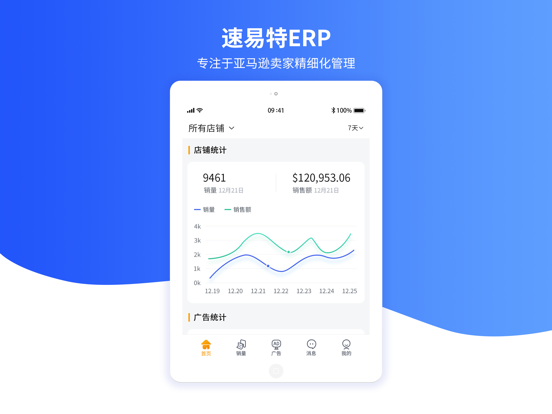 速易特ERP --专注于Amazon卖家精细化管理 速易特ERP是一款针对亚马逊卖家的一站式专业管理系统,支持运营、客服、仓库、财务电商公司一体化管理,该APP是速易特ERP移动端部分,包括销量统计、广告管理、单据审批功能,帮助运营人员洞察关键数据,实时了解运营管理中的每个环节,提高运营效率。 主要功能: 1. 一站式多店铺运营,提供精准、多维度的数据分析,直观的曲线图及对比数据分析,为运营决策提供数据支持。 2. 广告管理,随时随地查看广告表现分析,还可以进行广告调价 3. 单据,提供单据审核功能。 *我们保障您的数据安全 速易特ERP是亚马逊官方认证的开发者,已入住亚马逊应用商城,加入了亚马逊SPN服务商网络,也是亚马逊广告合作伙伴。 客服电话:400-118-60991.优化交互 2.修复已知bug