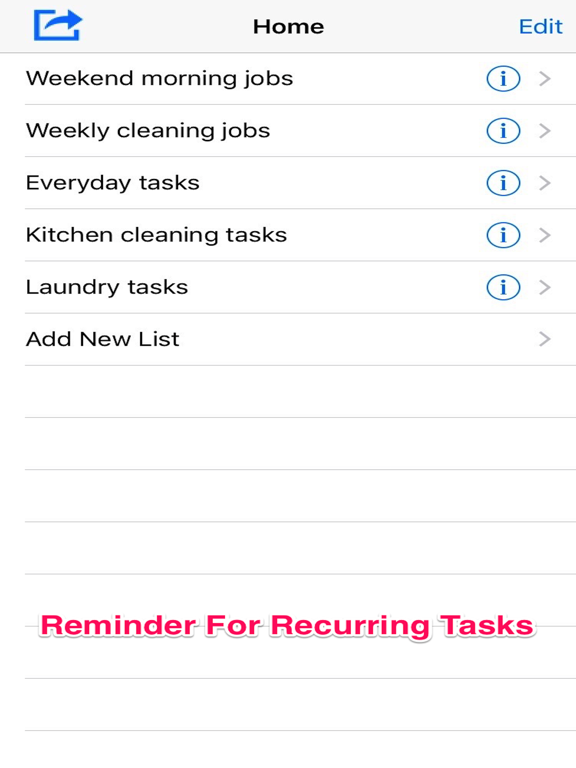 创建你的重复任务清单,享受通知提醒和自动重置的便利。这款APP能节省您的时间,使您的生活更加轻松。 这款提醒APP是专门为重复性任务设计的,比如,每天整理房间,每周做家务等等。 功能特点: * 专门针对重复性任务设计 * 同时支持自动重置任务和手动重置任务 * 自动隐藏已完成的任务 * 可设置的重置日期和时间 * 支持的重复间隔 - 每天,每周,每月和每年 * 可以发送通知提醒 * 简单易用,友好的用户界面Apple 已更新此 App 以显示 Apple Watch App 图标。 * Bugfix