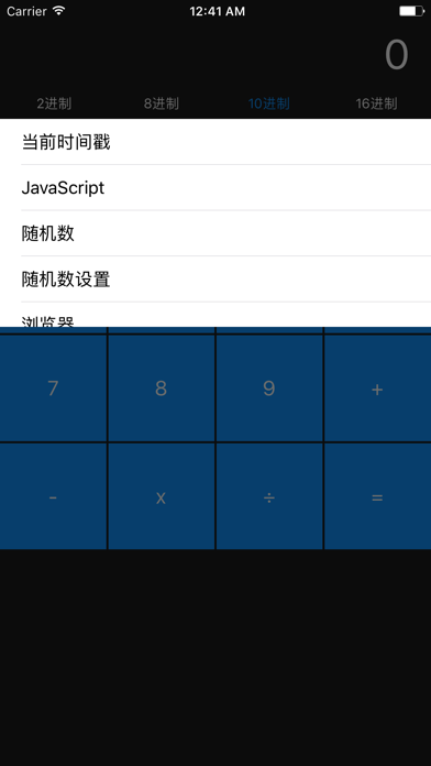 这是一个开发者专用计算器,主要功能: [1]2、8、10、16进制之间的切换,2进制支持左右位移、或且非异或计算 [2]执行js,支持保存读取js代码 [3]获取时间戳,获取当前时间戳以方便进行其他调试工作 [4]获取随机数,可以设置随机数区间获取随机数 [5]简单的浏览器,简单的浏览器功能 [6]时间转换,轻松实现时间戳和时间互转修复已知问题,优化框架