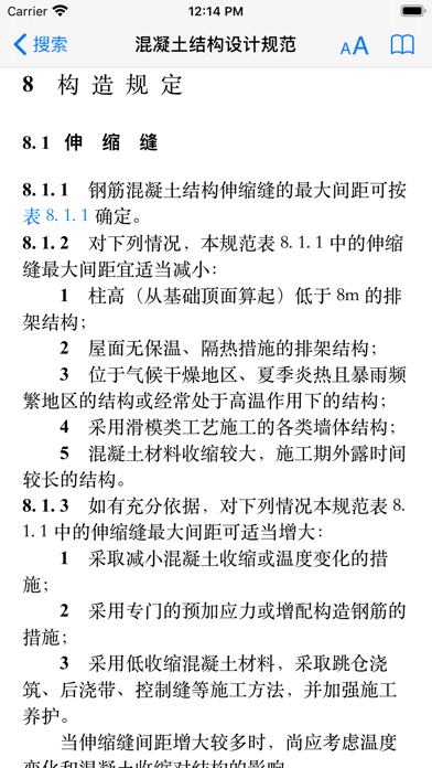 在规范条文中找依据?明明记得有那一条,为什么就翻不到呢?现在可以搜索规范条文了! 常用结构设计规范条文查询。 【功能特点】 1. 本地查询,秒出结果; 2. 不需要的查询条目可随手滑动删除; 3. 收藏夹功能,收藏常用、重要条文; 4. 条文字体、排版与纸质规范相同; 5. 规范原文查看,字号大小4级调节; 6. 支持黑暗模式。 【目前包含的可查询规范】 《建筑设计防火规范(2018年版)》GB 50016-2014 《工程结构通用规范》GB 55001-2021 《建筑结构可靠性设计统一标准》GB 50068-2018 《建筑与市政地基基础通用规范》GB 55003-2021 《建筑地基基础规范》GB/T 50007-2011 《建筑结构荷载规范》GB 50009-2012 《钢结构通用规范》GB 55006-2021 《钢结构设计标准》GB 50017-2017 《混凝土结构通用规范》GB 55008-2021 《混凝土结构设计标准》(2024年版)GB/T 50010-2010 《砌体结构通用规范》GB 55007-2021 《砌体结构设计规范》GB 50003-2011 《建筑工程抗震设防分类标准》GB 50223-2008 《建筑与市政工程抗震通用规范》GB 55002-2021 《建筑抗震设计标准》(2024年版)GB/T 50011-2010 《高层建筑混凝土结构技术规程》GB JGJ 3-2010 《高层民用建筑钢结构技术规程》JGJ 99-2015 《混凝土异形柱结构技术规程》JGJ 149-2017 《钢管混凝土结构技术规范》GB 50936-2014 《门式刚架轻型房屋钢结构技术规范》GB 51022-2015 《建筑地基处理技术规范》JGJ 79-2012 《建筑桩基技术规范》JGJ 94-2008 《湿陷性黄土地区建筑标准》GB 50025-2018 《工程结构设计基本术语标准》GB/T 50083-2014 《建筑结构制图标准》GB/T 50105-2010 以上均为现行国家或行业标准,将陆续增加其他现行常用规范。 【使用条款】 1.未订阅用户(免费版):查阅规范条文,有限次搜索体验。 2.订阅用户(正式版):无广告无限制查询(查看)。可按月或按年订阅,自动续期之前可随时取消订阅。 3.可一次买断,永久升级。 更多信息请参阅官网: https://www.luckybianbian.top/index.php/sample-page/ 【免责声明】App只是用来提高设计计算速度的工具。App开发者不对计算结果的正确性与适用性作出承诺。如果将其应用于实际工程,使用者应自行校核并判断计算结果的正确性与适用性。App开发者不承担由此带来的任何直接或间接损失。 【问题和建议】 如有问题或建议请在AppStore评论中提出或使用以下联系方式。 微博:@结构设计App 电子邮件:lrtjqn@icloud.com 网站:https://www.luckybianbian.top1.新增《建筑与市政工程抗震通用规范》等2本相关通用规范; 2.更新《混凝土结构设计规范》和《建筑抗震设计规范》为2024年版; 3.bug修复。