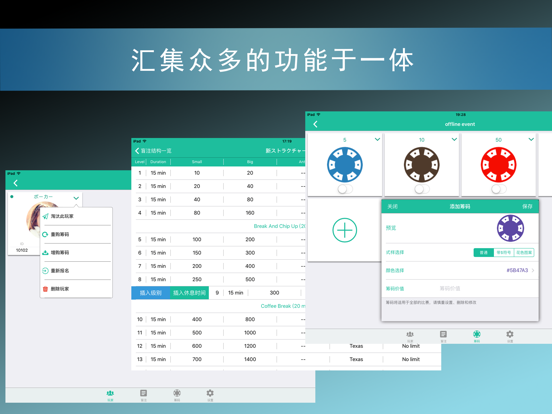 可在多设备同步的扑克计时器! 扑克比赛的时间、筹码、玩家信息将被自动同步到iPhone,iPad,Apple TV各个设备。不论是大型多人桌比赛或是一桌的小比赛都可以利用这套系统。您无须担心电脑和电视的连接线以及任何麻烦的操作! 此外,这套扑克俱乐部系统将会为您管理比赛、盲注结构、会员以及参赛玩家等所有的扑克俱乐部营运中的全套流程,为您剩下成本和时间,提高效率! 最终用户许可协议(EULA): https://www.apple.com/legal/internet-services/itunes/dev/stdeula/新功能 - 支持最新的 iOS 版本 - 新增计时器底部新聞的颜色设置功能 - 新增联系我们的邮件发送功能 - 新增最新通知展示功能