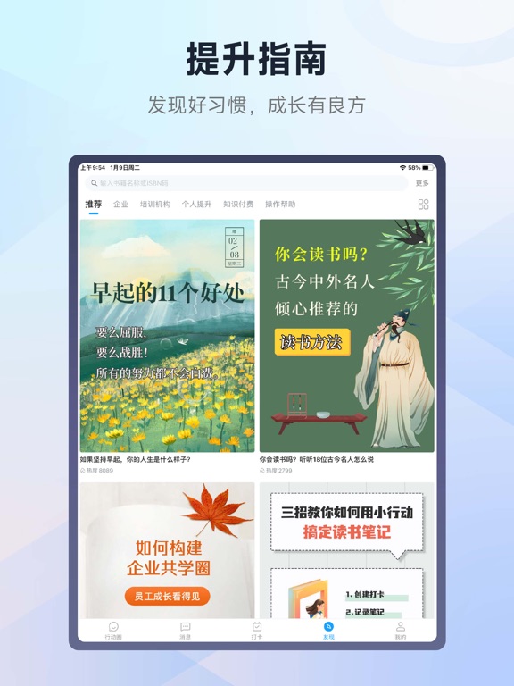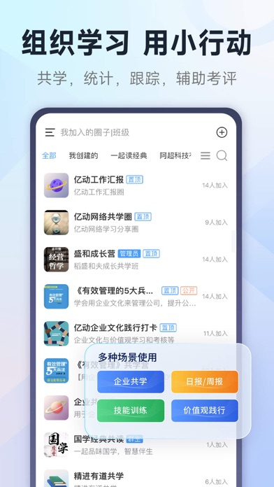 小行动是一款高效组织读书会、班级学习、日常打卡、企业培训的工具。 更注重“学习+践行”的互动式学习。有效帮助企业、培训机构、KOL(意见领袖)等解决在有效学习、管理效率等方面的难题。 【企业使用】 帮助企业构建学习型组织,支持书籍共学、价值观落地考核、部门培训等多场景使用,解决企业在员工培训方面成本高、组织难、执行难、难评估、形式化等问题。帮助企业员工学习成长,提高企业人效。 【培训机构使用】 支持构建在线培训体系,组织在线学习,为线下赋能,跟进学后践行,帮助培训机构提升培训效果,扩大服务范围,节省人力,帮助机构加快推广和打造成功可复制的培训模式,提高收入。 【KOL使用】 支持知识创作者构建自己的粉丝圈,实现知识变现。更注重与成员之间的学习互动,班级化集中学习+有效践行,提升成员学习效果,提高变现能力。 如果你是培训机构/企业/KOL,下载小行动,你将获得: - 学员便捷管理:一键创建圈子/组织,邀请学员,轻松管理 - 在线培训知识体系构建:支持自定义学习和课程内容,多种内容类型创建 - 知识沉淀,进度跟踪:圈内知识有序沉淀,查看无干扰,及时查看学员学习情况,及时指导 - 组织容易,互动式学习:社群化学习监督,不受时间和场地限制,随时随地开启学习 - 跟踪学员效果践行:如与具体的岗位业务关联,日常工作汇报等,发现问题,针对性提升 - 学习数据跟踪:完善的学习打卡数据统计,有效节省人力的统计成本,量化评估 - 游戏化奖励设置:支持内设不确定奖励,趣味性拼图和刮刮卡玩法,激励成员学习和坚持 - 精选学习内容:先人智慧弥足珍贵,精选国学、哲学等经典文学内容,支持笔记和跟读。 如果你是个人使用,下载小行动,你将获得: ※ 让学习发生,让学以致用 - 读书笔记:通过读书打卡,记录你的学习笔记和成果,构建属于你自己的学习知识库和成长履历; - 践行打卡:早睡早起、运动健康、学习成长...每天坚持,战胜拖延症,成为自控达人! - 多种打卡类型:番茄钟专注,笔记记录,设定目标,倒数日等,实现自己的小目标,满足你的打卡所需; - 读书践行圈:读书会和共学圈,与志同道合的用户一起努力,共同成长; - 统计数据:完善的数据统计模块,多维度记录你的点滴积累,你的努力,都有被看到! - 笔记回顾:对于所学所得反复复习,加深记忆,帮助沉淀,转化为个人所用-修复一些已知问题,提升读书打卡体验