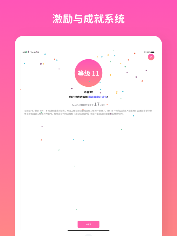 工作学习钟Cubi - 配套App. 智能 & 计时器 游戏化激励系统,物理计时器,不依赖APP,隔绝手机强干扰源, 锁住专注力 | 点亮时间观念 | 提高人生效率 | 强化目标管理 | 碾压拖延症 引爆人生效率,从此每天变成26小时, 切断手机干扰,不再焦虑,不再拖延, 专为脑力工作者量身打造, 选择工作学习钟Cubi,选择不同的人生.v12.7 * 界面改进与Bug修复。 技术支持: support@kanjianshijian.com 或 微信搜索 “看见时间自习室” 公众号。 欢迎大家的问题反馈与新想法分享!