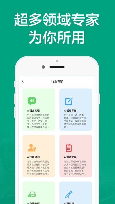 AI对话是一款先进的人工智能聊天机器人应用程序,旨在帮助用户快速和方便地获得信息,绘画和支持。 通过使用最先进的自然语言处理技术,Ai 对话可以理解用户的询问,并提供相关的回答。该应用程序不仅能够回答常见问题,还能根据用户的询问提供个性化的支持。 总之,Ai 对话是一款功能强大、易于使用的人工智能聊天机器人应用程序,可以帮助用户获得快速、高效和个性化的支持。 不论是实时聊天、AI翻译、创意写作、技能培训、旅游文案和攻略、写演讲稿,还是写简历求职信、担当全科老师,我们的软件都能助您一臂之力。 软件主要功能包括: 1. 实时聊天:借助先进的聊天机器人,享受无缝的实时对话,智能、个性化的回复让沟通更自然。 2.AI绘图:你只需告诉AI,你想要的图像效果,它就能为你快速绘制图像,直到满意为止 2. AI翻译:轻松跨越语言障碍,实现准确、即时的语言翻译。 3. 创意写作:提供建议、生成独特创意,助您撰写引人入胜的内容,无论是文章、故事还是营销文案和演讲稿。 4. 技能培训:通过互动式培训模块,提供量身定制的课程和练习,助您全面提升专业技能。 5. 旅游文案和攻略:获取精心编写的旅行行程、目的地描述和内部贴士,规划畅游之旅。 6. 写演讲稿:借助专家指导和有针对性的语言,撰写演讲稿,提升演讲表现力。 7. 写简历求职信:获得卓越的求职辅助,撰写出引人注目的简历和求职信。 8. 全科老师:担当多科目教师角色,提供全面解释和练习材料,助您掌握各学科知识。 我们的软件以先进的人工智能技术为基础,为您提供高效、个性化的解决方案。无论是实时对话、创意生成还是技能培训,我们的软件都具备智能化的能力,适应您的需求和风格。此外,我们的翻译功能准确且及时,帮助您畅通无阻地与世界沟通。无论是写作辅助、旅行规划还是求职辅助,我们的软件提供专业指导和定制化的语言,为您的成功加分。最后,我们的全科老师功能提供了跨学科的全面教学支持,让您在各个学科领域都能得到专业的辅导。 软件的部分功能需要付费使用。 如何任何的反馈建议或者合作请联系我们(wyappled@gmail.com)-新增语音对话功能