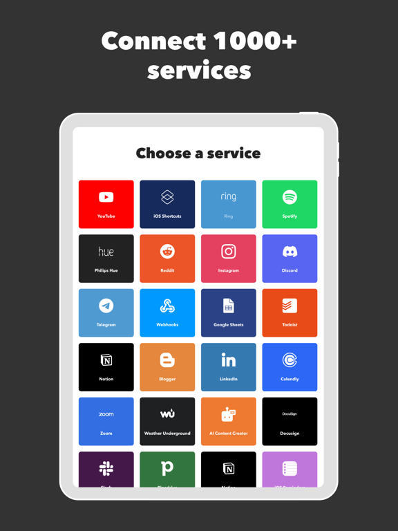 工作流程和智能家居自动化 用IFTTT(即IF This Then That)在工作和智能家居中节省时间。加入我们拥有近3000万人的消费者、创作者和智能家居爱好者的社区用IFTTT节省工作时间。IFTTT的简单无代码界面结合了最热门的1000多个应用程序,让您可以快速地自动化复杂的任务。在外出时,通过IFTTT的定位、通知和小部件的功能来激发自动化的威力。立即下载应用程序。我们有提供免费套餐,以及全功能试用期。 (Here’s a few ideas to get you started): 以下是一些自动化的用法: • 写一次文稿,将作品分发到多个社交平台,实现同时多平台发布 • 连接和操控智能家居设备 • 用IFTTT AI 编程和总结文件内容 • 用IFTTT Location 帮忙自动化工作和智能家居设备 • 用IFTTT Webhooks 帮忙自动化更多的应用程序 热门iOS原生程序 iOS Calendar, iOS Contacts, iOS Health, iOS Photos, iOS Reading List, iOS Reminders, iOS Shortcuts IFTTT AI 服务 AI Content Creator, AI Prompt, AI Social Creator, AI Summarizer, AI YouTube Assistant IFTTT 40大商业APP排名 Acuity, Airtable, Aweber, Buffer, Calendly, Clickup, Constant Contact, Discord, DocuSign, Dropbox, Eventbrite, FaceBook Lead Ads, Gmail, Google Ads, Google Calendar, Google Docs, Google Forms, Google Meet, Google My Business, Google Sheets, Gumroad, Instagram, LinkedIn, Mailchimp, Microsoft, Notion, Pipedrive, QuickBooks, RSS, Shippo, Slack, Stripe, SurveyMonkey, Todoist, Trello, Webflow, WordPress, X(Twitter), YouTube, Zoom IFTTT 40大智能家居APP排名 Aqara, Arlo, August, Blink, Coinbase, ESPN, FitBit, GE, Google Assistant, Google Nest, Google Wifi, Home Connect, Honeywell, Husqvarna, iRobot, LaMetric, LIFX, Midea, MyQ, Nanoleaf, NZXT, Philips Hue, Ring, Sengled, Somfy, Smart Life, SmartThings, Soundcloud, Spotify, Strava, SwitchBot, Twitch, Weather Underground, WeMo, Wink, Withings, Wyze, Yeelight, Yelp 获取帮助: https://help.ifttt.com/ 使用条款: https://ifttt.com/termsTTThanks for using IFTTT! This update includes: + Big updates to our integration pages: Quickly and easily discover Applets that use your favorite service combinations. + More improvements to our app pages: Improved search and new use cases to help you understand what each service integration can do on IFTTT. + Lots of bug fixes and performance improvements!