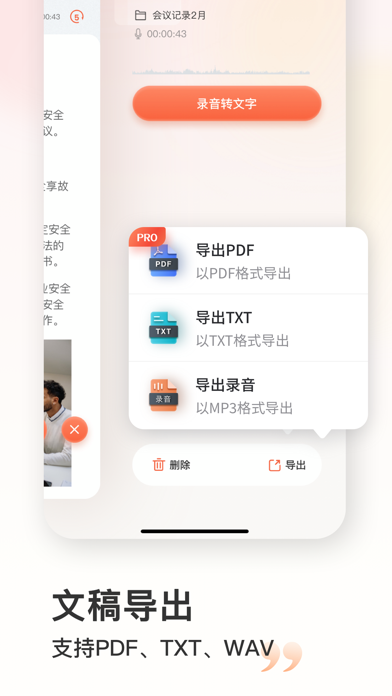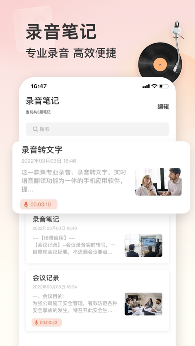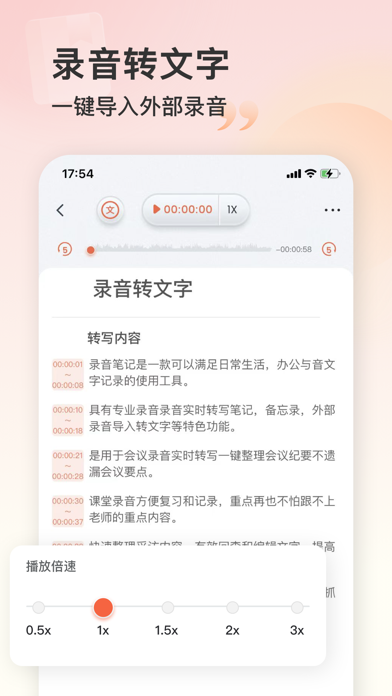 录音笔记具有专业录音、录音转文字、多语言转写、笔记备忘录、外部录音导入转文字等特色功能。是一款可以满足日常生活办公语音文字记录的实用工具,操作简单,转换迅速。 【录音转文字】 -支持汉语、英语双语言转写 -支持外部导入录音转写文字 -支持调整播放速度(0.5x,1x,1.5x,2x,3x) 【笔记备忘录】 -笔记编辑、录音可同时进行,不漏要点 -支持后台录音,暂停后可继续录音 -支持插入图片标记 【文件管理】 -支持导出mp3格式音频、TXT文本、和PDF文稿 -支持创建多个文件夹,高效分类管理 -保留最近删除文件夹,不用担心误操作 【场景应用】 -会议记录 会议录音实时转写,一键整理会议纪要 -课堂笔记 ppt拍照和课堂录音,方便复习和记录重点 -采访访谈 快速整理采访内容,有效回查和编辑文字 -灵感记录 记录突发的灵感,便于记录整理 【自动订阅】 关于应用程序内提供的会员服务,我们提供: 「一年VIP」:可享受一年的会员权益,价格¥128 「三个月VIP」:可享受三个月的会员权益,价格¥58 「一个月VIP」:可享受一个月的会员权益,价格¥28 确认购买后,将会从您的 iTunes 帐户中收取费用。您可以在每个周期结束至少 24 小时前取消下个周期的订阅,每个周期结束 24 小时内将会自动续订,已订阅的周期将无法取消。 -隐私政策:https://static.rhinox.cn/html/privacy/10162132380972710001.html?appName=录音笔记 -会员付费协议:https://static.rhinox.cn/html/paymentagreement/general.html新版本更新,修复了一些小问题,用户使用更流畅!