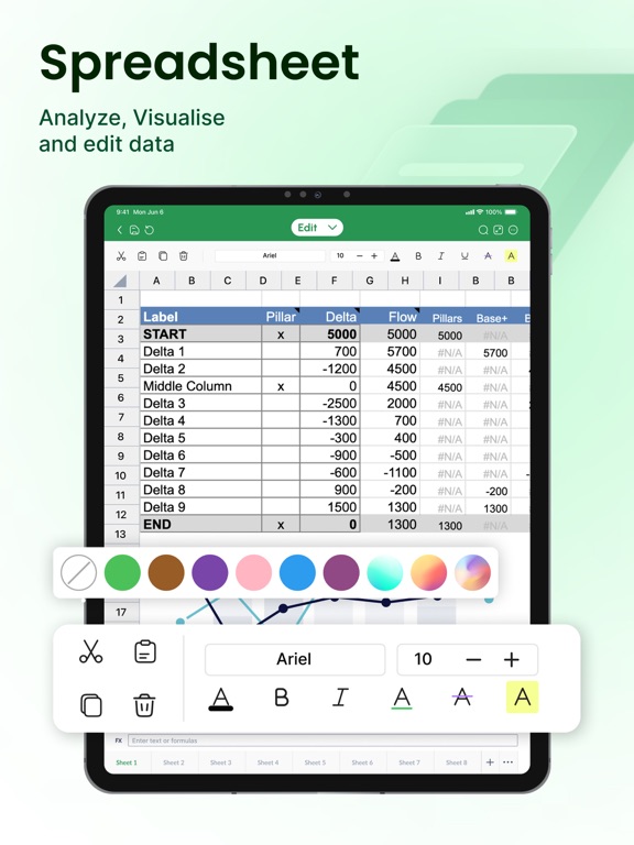 正在为您的 iOS 设备寻找功能强大、用户友好的 XLS Sheets 应用程序? 别再犹豫了! 对于需要随时随地创建、编辑和管理电子表格的任何人来说,我们的 XLS Sheets 应用程序是完美的解决方案。 用于以无与伦比的轻松性和效率创建、查看、编辑和共享 XLS 文件和智能表的一体化解决方案。 使用这款功能强大的生产力应用程序,无缝处理电子表格、表格和工作簿,无论它们是在收件箱中还是在设备上。 主要特征: 精确编辑: - 获取一整套编辑工具,使您能够对电子表格进行精确更改。 - 轻松剪切、复制、粘贴、设置单元格格式以及应用公式。 公式生成器: - 访问函数库并在输入时获得实时公式建议,确保计算无误。 - 在电子表格和智能表中快速创建和操作最复杂的公式、图表和表格 - 轻松处理复杂的计算和视觉表示。 数据可视化: - 使用电子表格和智能表中的常用图表和图形轻松可视化您的数据。 - 添加和编辑图表标签以突出关键见解。 - 包括一个饼图制作工具,可以快速轻松地创建两种格式的图表。 合作: - 通过 Google Drive、Dropbox 和 OneDrive 等云集成服务共享电子表格,与同事或同学实时协作。 数据分析:使用强大的分析工具深入研究您的数据。 对表格进行排序、筛选和数据透视表,以从电子表格中获得有价值的见解。 使用数据透视表轻松汇总数据。 表格和电子表格 - 使用电子表格和智能表中的预算、任务列表、会计和财务分析的现代模板简化您的任务。 - 熟悉的公式使计算变得轻而易举,而丰富的格式选项增强了工作簿的可读性。 数据导入和导出: - 从各种来源导入数据,包括 CSV 文件、Web 表格和其他 XLS 文件。 - 将您的作品导出为不同的格式,例如 PDF、CSV 或 XLS,确保与各种平台的兼容性。 定制: - 通过可自定义的主题、单元格样式和条件格式选项来个性化您的 XLS 体验。 - 使您的电子表格不仅实用,而且具有视觉吸引力。 离线访问: - 即使您处于离线状态,也可以继续处理电子表格。 - 离线模式确保您无论身在何处都可以访问重要数据。 支持和更新: - 享受定期更新和一流的客户支持,确保您的编辑体验保持流畅和高效。 无论您是商务专业人士、学生还是只是需要定期处理数据的人,我们的 XLS 表格应用程序都是您的完美工具。 立即下载并开始更聪明地工作,而不是更辛苦! 3 天免费试用 • 免费试用所有付费功能 3 天 • 选择最适合您需求的计划 • 随时取消,无需承担任何义务 订阅费用将通过您的 App Store 帐户从您的信用卡中扣除。 除非在当前订阅期结束前至少 24 小时取消,否则您的订阅将自动续订。 购买后,在 App Store 的帐户设置中管理您的订阅。 使用条款 - https://sites.google.com/a1apps.co/tc-xlsx-sheets-ios/home 欢迎任何反馈:p3@a1apps.helpscoutapp.com- 改进用户界面 - 引入更多公式 - 在 iPhone 和 iPad 上编辑兼容 Excel 的文件 - 修复一些小错误