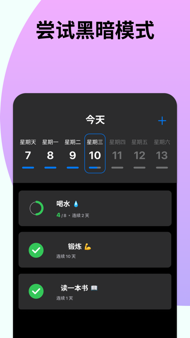 养成健康习惯很容易!在习惯跟踪器的帮助下提高自己。 您是否经常计划雄心勃勃的目标,但后来又放弃了?您是否曾多次尝试将健康的习惯引入生活,但仅仅几天后就停止了?现在,您可以在习惯追踪器的帮助下让您的生活变得更好。 养成你的第一个习惯 万岁!您已经迈出了改变的第一步。养成你的第一个习惯。选择任何现成的习惯或添加您自己的习惯。这很简单:只需想一个标题,添加一个励志短语,然后开始迈向新生活! 跟踪您的进度 打开你的习惯卡并检查你的连续记录,以了解你的表现如何。还有一个日历可以显示您错过的日子。 制定计划,盘点库存 设置早晨通知,以便在一天开始时获取您的习惯计划。这将使您保持正轨并充满动力。晚间提醒将帮助您总结当天已完成的习惯。 您还可以为应用程序选择深色主题。邀请你的朋友一起养成健康的习惯。 高级功能 — 白天无限提醒和重复,以及每日时间表。定制您的习惯以满足您的需求和日常生活。 — 查看有关您所有习惯的详细统计数据,例如您当前和最佳习惯连续记录、您成功完成计划习惯的天数以及已完成习惯的总数。 — 统计数据中的日历可帮助您确定效率最高和效率最低的日子。在不同月份之间切换并跟踪您的进展。 立即安装该应用程序,让您的生活变得更美好。 该应用程序提供自动续订订阅,只要您保持有效订阅,您就可以无限制地访问所有功能。您的帐户将在当前周期结束前 24 小时内收取续订费用,并显示续订费用。您可以管理您的订阅,并且可以在购买后转到您的帐户设置来关闭自动续订。 请在此处阅读有关我们的条款和条件的更多信息: 条款和条件:https://calledandrey.github.io/habitapp/terms.html 隐私政策:https://calledandrey.github.io/habitapp/privacy.html 如果您有任何反馈,请通过电子邮件联系我们:habitappnet@gmail.com。我们会立即回复您修复了错误并提高了应用程序的稳定性。