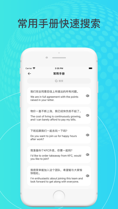 无广告免费纯净版 支持多种热门语言。支持同声传译。 具备常用手册,满足出行、旅游、学习等日常要求。快速查找,快速搜索。每天随机展示常用语,祝您快速扩充常用语知识面。 快速在线翻译,语言讲话直接翻。 使用条款:http://st.suzhoucc.top/st/use.html 隐私政策:http://st.suzhoucc.top/st/pri.html 技术支持:http://st.suzhoucc.top/st/support.html问题修复 稳定性提升 无广告免费纯净版