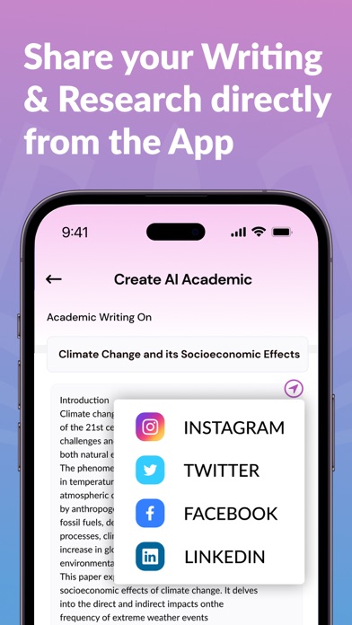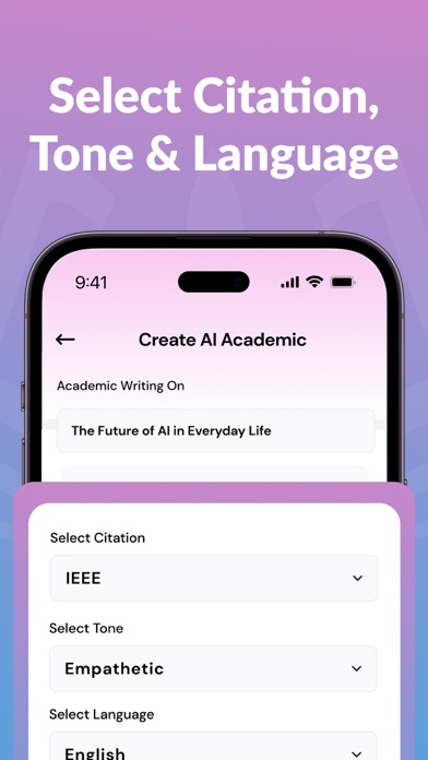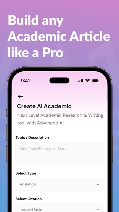 AI Academic Writer – Essay, Research paper & Thesis Assistant Whether you're working on an essay, research paper, literature review, or thesis, AI Academic Writer is your complete academic writing assistant. Perfect for students, researchers, and academic professionals who need fast, reliable, and intelligent writing assistance.Welcome to the AI Academic Writing & Research App – your ultimate companion for conquering academic challenges Key Features: --Academic Essay Writer (Up to 20,000+ Words) Generate detailed, structured essays tailored to your topic, complete with academic tone, references, and formatting. --Research Paper Writer Create in-depth research papers with clear arguments, evidence-based content, and citations in multiple styles (APA, MLA, etc.). --Literature Review Writer Automatically write comprehensive literature reviews with well-organized summaries and critical analysis of sources. --Human-like Content That Bypasses AI Detectors Get writing that mimics real human tone and structure, helping your work pass AI detection tools with confidence. --More Academic Topics and Categories Choose from a wide range of academic fields, from science and technology to humanities and business. --AI Academic Research Assistant Ask complex academic questions and get smart, concise answers instantly for faster research and understanding. --Thesis Statement Writer Quickly generate clear and focused thesis statements customized to your essay or research topic. --AI Research Proposal Writer Write strong research proposals with clear objectives, methodology, background, and academic justification. --Academic Writing Made Effortless Our AI-powered app is designed to unleash your creativity and elevate your academic writing to new heights. --Seamless Academic Research Our AI algorithm aids in sourcing, summarizing, and organizing research material, saving you valuable time and effort. --IELTS Writing Mastery Craft compelling essays, reports, and letters that impress examiners and pave the way to your dream university abroad. Reach that target IELTS band score with confidence and finesse. --AI Thesis Writer An AI thesis writer uses natural language processing to assist in drafting, editing, and organizing academic theses. --AI-Powered Grammar & Plagiarism Checks The plagiarism detection feature ensures the authenticity and originality of your writing, bolstering your academic integrity. --Unlock Your Potential with AI The AI Academic Writing & Research App is more than just a tool; it's an empowering mentor that nurtures your growth as an academic writer and researcher. Embrace innovation, tap into the latest AI technologies, and witness your academic journey flourish like never before. Additional Features: --AI-powered writing assistance for academic excellence --Extensive library of scholarly resources and research material --Tailored exercises for mastering IELTS writing --Real-time grammar and plagiarism checks Free trials and subscriptions • Try out all paid features free for 3 days • You may purchase an auto-renewing subscription through an In-App Purchase. • Auto-renewable subscription Pro Weekly - 1 week ($4.99) for a Week Duration, Pro Yearly - 1 Year ($19.99) durations, Half Yearly - $14.99 for six months duration. Advance Monthly - $14.99 for a month, Advance Yearly - $69.99 • Your subscription will be charged to your iTunes account at confirmation of purchase and will automatically renew (at the duration selected) unless auto-renew is turned off at least 24 hours before the end of the current period. • Current subscription may not be cancelled during the active subscription period; however, you can manage your subscription and/or turn off auto-renewal by visiting your iTunes Account Settings after purchase. Select a plan that best suits your needs Terms of Use - https://sites.google.com/view/termsofuseprivacypolicy/home --ai images support for academic chapters --bug fixes