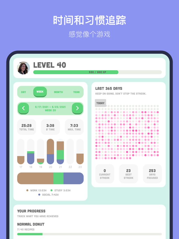 1) 啟動機器/開始挑戰:賺取甜甜圈、寶石和硬幣 2) 用甜甜圈餵你的狗“Focus”,賺取金幣和 XP 3)用漂亮的統計數據跟踪你的時間 4) 解鎖新的甜甜圈食譜、甜甜圈機、應用程序背景 5)升級並與世界或您的朋友競爭 6) 贈送您的寶石作為捐贈:從狗收容所餵養真正的狗 您想集中精力吗? 您无需删除社交网络,新闻或聊天应用程序! 如果您想放下手机并专注于现实生活中的重要事情,则可以打开甜甜圈机并为虚拟狗Focus制作甜甜圈。 每个甜甜圈都需要特定的生产时间,随着时间的流逝,您将烘烤甜甜圈。 但是,如果您无法忍受使用手机的诱惑并离开应用程序,则您的机器将停止。 请记住,Focus需要吃饭! 经营自己的小甜甜圈店的成就感以及对名为Focus的虚拟狗的责任将鼓励您远离手机。 Focus将帮助您更好地利用自己的时间。 不要再因手机而分心,让自己充满动力,并完成更多工作。 这是一个特别有效的学习和工作计时器应用程序。 Focus Dog具有高度的游戏性,激励性和竞争力。 您可以将其称为生活黑客,因为它可以帮助您养成健康的习惯。 Focus Dog是对抗手机上瘾并提高注意力范围的绝佳工具,从而可以提高工作效率。 丢弃传统的时间跟踪和秒表应用程序。 受到激励: •Focus Dog是一种感觉像游戏的生产力工具! 您可以获得许多成就,例如任务和特殊的甜甜圈。 您可以自定义应用程序,解锁新的甜甜圈或升级甜甜圈机器。 升级并与朋友竞争! •设计超级可爱,并包含大量细节,因此您不会感到无聊! •Focus Dog会激发您在工作后的第二天重新集中精力,以便您可以制定定期的工作计划。 •详细的统计信息使您了解上周和几个月的表现。 •使用标签跟踪您的时间! 保持专注: • 需要集中精力在办公室工作时 • 在家里或在您的图书馆/宿舍在学校/大学学习 • 注意上课或开会 • 上床养成健康的睡眠习惯 • 你需要打坐,给头部一些空间 报价: “这款生产力/游戏应用程序确实是独一无二的。此应用程序可帮助您将注意力集中在生活中的重要事物上,并与手机成瘾作斗争!”-某些与应用开发者完全不隶属的聪明人 “需要学习并且不想最终使用社交网络应用程序吗?试试这个游戏!”-David “我的女友喜欢甜甜圈狗!她每天都在用它!”-应用程序开发人员 “我喜欢甜甜圈!”-一个朋友 Focus Dog PRO 免費安裝Focus Dog,並根據需要使用其基本功能。 隨時通過應用內購買訂閱Focus Dog Pro。 Focus Dog Pro可以按月訂閱或一次性購買。購買確認後,將從您的iTunes帳戶中扣除付款。除非在訂閱期結束前至少24小時關閉自動更新功能,否則Focus Dog將在訂閱期結束時自動向您的iTunes帳戶收費。 購買後,您可以隨時在iTunes帳戶設置中隨時關閉自動續訂功能,並且在當前期間結束之前仍可以使用全部功能,但是我們無法退還未使用的部分訂閱。無法使用“家庭共享”共享應用內購買和訂閱。 使用條款:https://focusdog.app/terms/ 隱私政策:https://focusdog.app/privacy/ 聯繫我們 有問題或反饋嗎? 還是您只想說話? •Twitter:https:/twitter.com/FocusDogApp •支持:https://donutdog.freshdesk.com •電子郵件:support@donutdog.freshdesk.com此更新包括一个新的捐赠目标和一些小的修复。 感谢Hannah的反馈和错误报告。 保持安全和生产力! 柏林的问候, 帕特里克