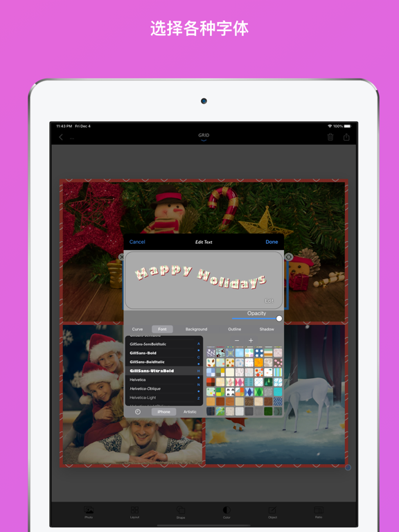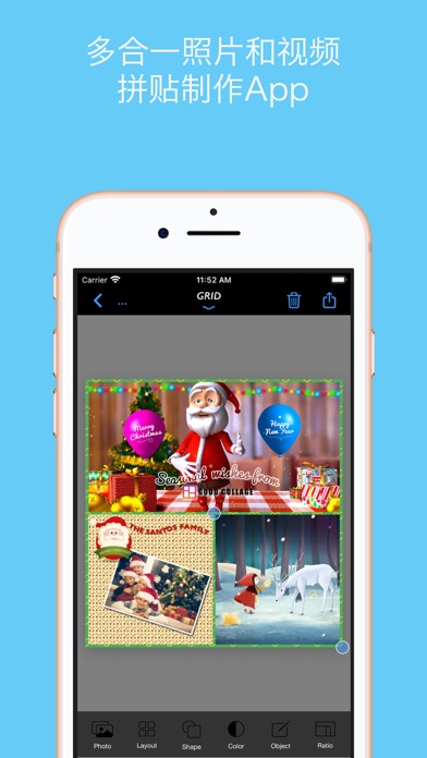 好拼贴(GoodCollage)是一款初学者易于使用,也能满足专业用户的功能强大的视频照片编辑软件。 == 主要功能 == 照片拼图 • 海报拼图,海量独家模版,支持高达16张照片 • 模版拼图,拼图黑科技,独创“融合”特效,随意更改模版布局、比例、边框、间距、边缘羽化。 • 自由拼图,随意添加照片、文字、贴纸,支持自动布局,可制作出理想的拼贴画或海报效果 • 长图拼接,支持竖拼,超高像素输出 照片加文字 • 海量字体,支持从互联网、iCloud、PC/Mac、或其他应用中下载安装你喜欢的任意字体 • 各种颜色类型,纯色、渐变色、海量纹理颜色、循环色,各种颜色都支持自定义 • 易于排版,支持字间距、行间距、文字拉伸,自动布局和微调、自动缩放、支持竖排文字 • 叠加混合,文字和艺术贴纸可以和照片混合,支持各种叠加模式 • 文字特效,支持描边、阴影、下划线、删除线、对齐,内置多种特效模版 • 3D文字,支持3D旋转文字 • 文字背景,支持各种风格的背景,轻松制作卡通、艺术、趣味效果 • 艺术字和符号,海量艺术素材,支持渲染文字特效 视频拼贴 • 101为矩形的布局与多达9个视频。 • [新]视频中的视频,最多5个视频(PIP)。 • 同时加载多张照片。 • 修剪每个视频。 • 应用美丽的效果到每个视频。 • 调整每个视频的音量。 • 添加你自己的歌曲作为背景音乐。 • 调节音量,背景音乐的开始/结束时间。 • 独特的装饰与圆润的边角,边缘,边框,阴影。 • 背景颜色和图案。 • 渐变和形状的背景颜色。 • 功能强大的文本编辑器,美丽的贴纸。 • 功能强大的文本编辑器,美丽的贴纸。 幻灯片 • 照片幻灯片用自己的照片。 • 仅文本幻灯片用文本和背景颜色。 • 编辑,交换,复制和删除每张幻灯片。 • 可自定义的播放时间。 • 10过渡效果。 • 添加你自己的歌曲作为背景音乐。 • 修剪和调整背景音乐的音量。 • 可定制的水印与美丽的文本样式和字体。 • 应用效果到每张照片的幻灯片。 • 添加旁白到每张幻灯片。 • 添加文字到每张幻灯片用漂亮的文本样式和字体。 • 即时预览。 • 转换为动画GIF。 可爱贴纸 • 内置各种类别的可爱贴纸,无需下载随时使用 艺术相框 • 多种风格易于使用、轻轻一点就能得到您满意的效果 这里有更多的功能等待您的发现,您的朋友一定会被您的作品震惊到! -------------------------- 如何安装字体 您可以通过iTunes将电脑上的字体文件(*.ttf, *.otf)导入到“完美影像”中。 1、选择您的iOS设备。 2、选择“应用程序”标签,然后拖动滚动条到界面底部。 3、选中“文件共享”下的“好拼贴”。 4、添加字体文件(*.ttf, *.otf)到“好拼贴”的文稿中。 5、重新运行“好拼贴”。 您也可以从其他应用程序中安装字体,比如Safari, iCloudImprove multi-language function