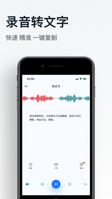 录音专家是一款专业的录音机app,提供语音智能识别转换、在线翻译、音频文件识别,音频剪辑等功能。界面清爽,美观,录音波形图生动可爱,性能优越。 主要功能包括: 1、专业的录音机功能 2、精准的语音识别结果一键复制 3、英文翻译 4、录音识别转文字 5、音频剪辑,格式转化 录音专家会员订阅: 连续包年VIP:RMB 98/年 录音专家订阅按年收费,在订阅期限内您可以无限访问录音专家的所有付费功能和内容。 1.确认购买时,将向iTunes账户收取费用; 2.订阅会自动续订,在当前订购周期内,无法取消当前周期的使用。您可以通过iTunes帐户的设置来管理或取消购买。 3.账户将在当前期间结束前24小时内收取续订费用,并确定续订费用; 4.订阅可以由用户管理,并且可以在购买后转到用户的账户设置来关闭自动续订; 5.如果提供免费试用期,任何未使用的部分将在用户购买该软件的订阅时被没收(如果适用)。 隐私条款: http://www.lidao1688.com/lyj_yszc 用户协议: http://www.lidao1688.com/lyj_yhxy 1、更新logo 2、修复图片错位问题