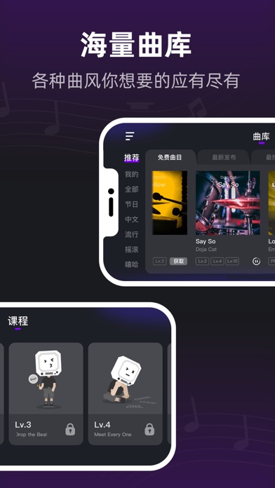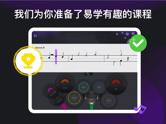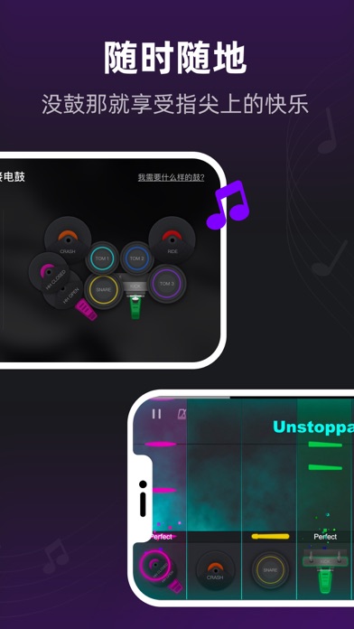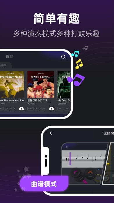 我们日常听到的音乐有99%都加入了鼓的演奏,鼓在乐队中是一个非常重要的存在,它掌控着歌曲的速度,节奏还有情绪。那如果现在有一款app,它可以教会你演奏架子鼓,你会想试一试吗?【小叶子架子鼓 - InstaDrum】在做的就是这件事情,从你对音乐最本质的感觉出发,让你在玩音乐的同时,不断掌握架子鼓的演奏技巧。 让学习架子鼓变得高效有趣 - 我们适配了所有品牌的电鼓。不管你使用的是电架子鼓,或是手卷鼓,亦或是鼓机,它们都可以连接到InstaDrum。那如果你没有鼓呢?我们也为你提供了解决方案,我们在软件中为你准备了一款用手指就能玩的虚拟鼓。让我们随着你喜欢的音乐一起做个有趣的有氧运动吧。 特色: - 智能互动+即时反馈,让你的每一下敲击必有回响。 - 包含课程和曲库两大版块,覆盖各种曲风和不同难度。 - 从游戏到演奏,每一步都循序渐进,让你玩有所成。 - 适合各个年龄人群,不需要任何音乐基础就能玩。 - 怕没有软件就不会敲鼓?我们教的不只是游戏,还有曲谱。 内容: - 课程:从初学到专业不断进阶的课程。几分钟学习一个节奏型,一节课学会一首歌曲。视频,游戏,识谱,演奏,四个环节,让你学的轻松,玩得有趣。 - 曲库:海量好听的歌曲供你学习和演奏。每一首歌曲都会制作多个级别的曲谱,以适配你在课程中学习的内容。我们为你拆解了每首曲谱里出现的节奏型,你可以在学习歌曲的功能中反复练习。熟练歌曲之后,你可以尝试我们的演奏功能,与全世界的鼓手一起一较高下。 隐私政策:https://www.instadrum.com/instadrum_privacy_policy.html 用户服务协议:https://www.instadrum.com/instadrum_user_agreement.html适配iOS18