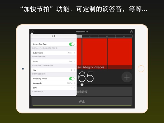 Metronome M1 是一款简单而极其精确的节拍器,其同时适用于移动设备。 - 音乐家必不可少的练习工具。 - 包含所有基本功能。 - 拥有双倍、三倍和四倍节拍细分功能。 - “加快节拍”功能,可定制的滴答音,等等...框架和安全更新。
