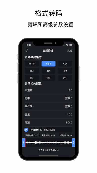 音频提取器允许您从视频中快速提取音频文件,并可以轻松转换各种格式的音频或制作铃声 - 支持从多种类型视频中提取音频 - 支持音频裁剪 - 支持音频拼接 - 支持音频制作铃声 - 支持音频批量提取 - 支持音频多种格式转码 - 支持音频音量大小调整 - 支持音频倍速播放和导出 - 支持自定义采样率、声道数、码率 【音频提取器VIP订阅】 1.订阅音频提取器VIP会员包括以下功能:无限制使用所有高级功能,批量提取音频,倍速修改,去除所有广告。 2.音频提取器VIP会员提供免费使用(按年费续订),按月订阅。如有需要,我们也提供除现有订阅方案以外的一次性付费服务。价格取决于您选择的订阅套餐。 3.订阅自动按所选套餐价格续订,除非当前订阅期提前24小时取消。订阅费在您确认购买时通过iTunes账户收取。购买后您可以前往账户设置,管理订阅和关闭自动续订。根据Apple的政策,在活动订阅期内不能取消当前订阅。购买后将不会为任何未使用的部分退款。 4.如果您拥有免费试用资格且在免费试用期结束前订阅,则在您确认购买后剩下的免费试用期将被取消。订阅将在免费使用结束后立即开始,除非在试用结束前至少24小时取消。 隐私政策:https://sites.google.com/view/appaudio/audio/privacy 用户协议:https://sites.google.com/view/appaudio/audio/agreementBugfixes and performance improvements