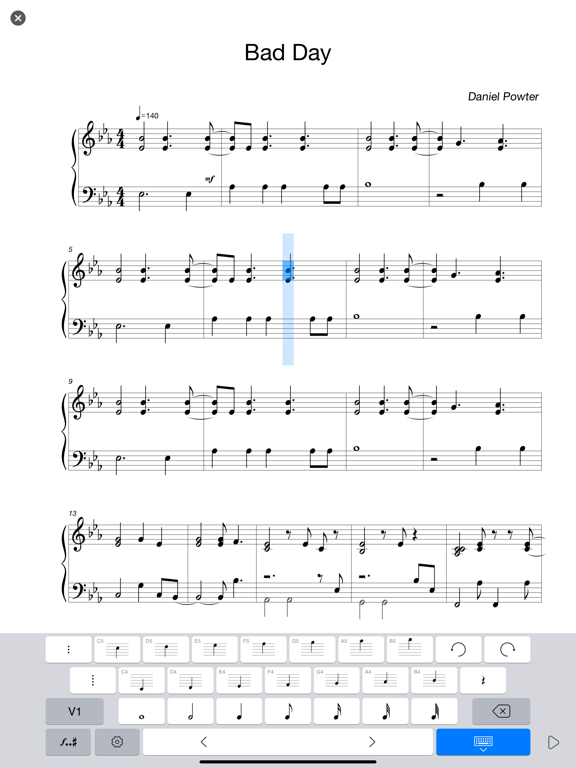 用键盘打字的方式制作乐谱,熟悉的键盘布局让你能够轻松写出美妙的五线谱和动听的音乐,它提供一种非常简洁高效且足够强大的方式来帮助你创作音乐。支持最多8个部分、超过100种乐器类型、多种多样的乐谱符号及音符。既适合新手学习如何创作乐谱,又能胜任专业制作人的打谱工具。 --------------------------------- UNLIMITED ACCESS SUBSCRIPTION - Support up to 8 parts - Config parts(add, delete, reorder) - Change key for each part - Change beat type and tempo - Config clef for each staff - Config sound for each part - No watermark image export - No Ads - Support 2nd voice part - Transpose instruments - Change keyboard size - Import data file - Unlock all 100+ instruments - The subscriptions are $9.99 monthly and $49.99 yearly with free trial - Payment will be charged to iTunes Account at confirmation of purchase - Subscription automatically renews unless auto-renew is turned off at least 24-hours before the end of the current period - Account will be charged for renewal within 24-hours prior to the end of the current period, and identify the cost of the renewal - Subscriptions may be managed by the user and auto-renewal may be turned off by going to the user's Account Settings after purchase - Any unused portion of a free trial period, if offered, will be forfeited when the user purchases a subscription to that service, where applicable - Terms of use: https://service.notationpad.com/terms_service.html- fixed bugs - improved UI display - reduced ads