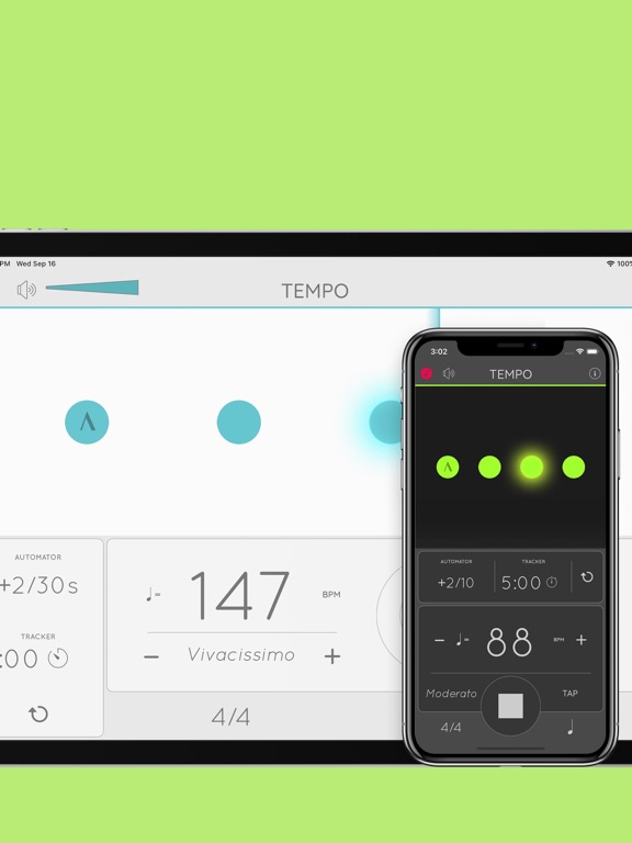 iOS超级节拍器应用程序Tempo现在可用为免费简装版。在iTune登录主页上,Apple将Tempo评为“值得关注新应用”和“最爱应用”。现在你在升级到完整功能包前可享用Tempo的核心功能。 其应用程序的编写都以其功能的高精确度和稳定性做为考量。它也可在仪器处于锁定状态时运作,可成为现场击鼓表演时的一个援助。 特惠包括通过追踪栏数或播放时间助你操作的追踪器模块。 与购买Tempo相对,升级Tempo精简版让你为反面视图获取暗色方案(取代亮色)。 欲观看示范片,可浏览 www.frozenape.com. 功能 组态 • 4种拍号,包括复拍子和复音:1-4/4, 3/8, 6/8, 9/8, 12/8 • 单拍子有6 种节奏模式,复拍子有3 种节奏模式 • 可自定重音或把拍子消除以制造更复杂的节奏 • 具tap tempo 的功能 • 速度从10至800 显示 • 以非純直流LED的视觉反馈 • 可选择有钟摆画面 • 可选择让整个荧幕闪烁 跟踪器和自动工具 • 追踪显示栏数或操作时间 • 教练模式在未静音和静音小节之间交替。 • 到时限时自动停止播放 • 计入多达2个声音小节 • 每n个小节数或每n时间自动调整速度 音响 • 可从4种音响中选择 • 音量控制和静音按钮 杂项 • 意大利文与古典节拍器速度标记 • 多重功能支援:可在背景播放,可在其他有声程序在进行时操作 • 2个界面主题:亮色与暗色Tempo 现在在 iPhone 16 Pro 和 iPhone 16 Pro Max 上原生显示。 错误修复。