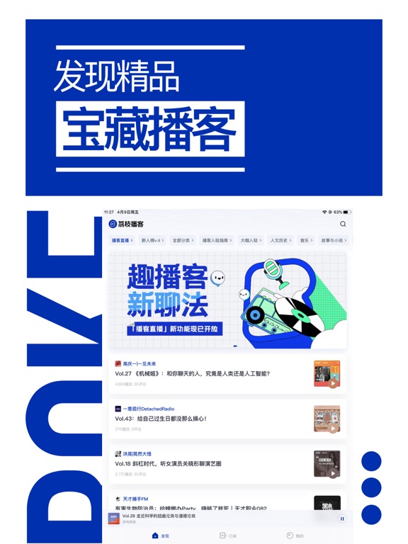 荔枝播客,更懂你的收听、畅聊播客平台 -在这里,轻松找到有趣的的播客内容,发现有思想的播客创作者,获得纯粹的收听体验; -在这里,用好奇和欢乐代替焦虑,用陌生又熟悉的声音消解孤独感; -在这里,感受“播客会客厅”一般的现场氛围,让收听播客,成为你每天的happy hour~ 【发现精品宝藏播客】 编辑精选、类型标签、听友评论为你筛选的优质播客,让你快速找到感兴趣的播客 【播客直播实时对话】 和播客主创、听友直播互动收听感想,碰撞出更多火花 【记录收听的每一分钟】 没能帮你记录匆忙的日程,但替你记录了琐碎的每个清晨,傍晚、睡前收听的美好点滴。 【精心打磨的收听体验】 更沉浸和纯粹的收听体验,个性化播放设置,在收听时和听友的想法邂逅~ 在使用过程中遇到任何问题,欢迎反馈: 官方邮箱:lizhiboke@lizhi.fm修复一些已知的问题