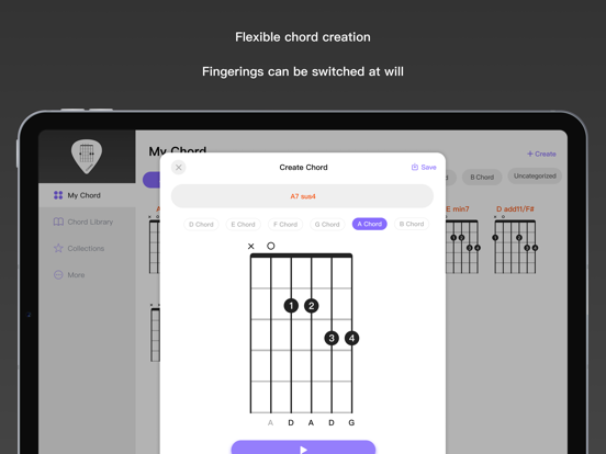 快来打造你自己的和弦库,记录学过和已掌握的和弦,随时随地翻看。 【和弦预览】 和弦声音随时预览,找出最和谐的声音。 【自定义和弦】 有自己独特的按法,学过稀奇的和弦,通通可记录。 【导出和弦】 支持单个和弦导出,并生成图片,打印分享看你心情。1. 收藏的和弦现在可导出为PDF 2. 增加日语、德语支持