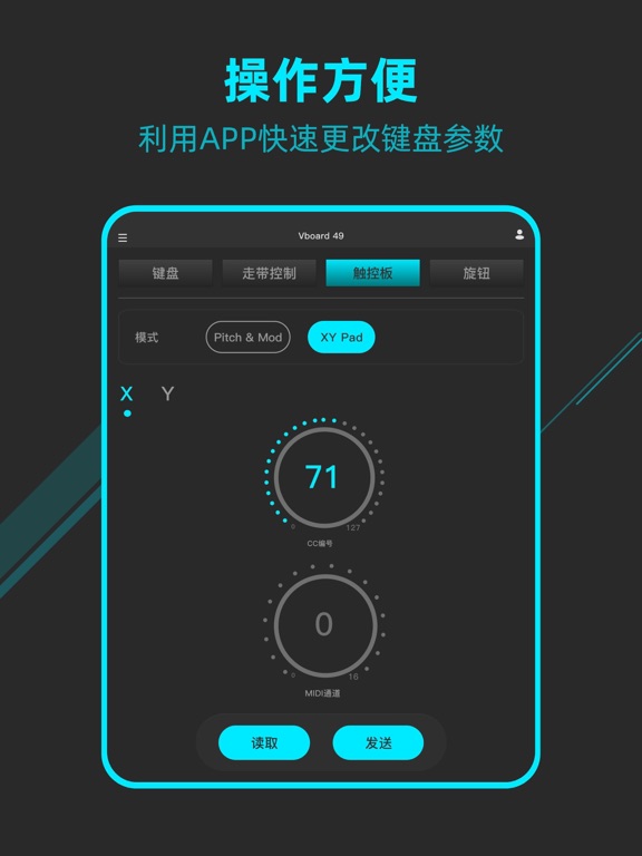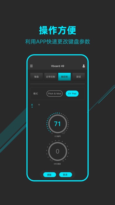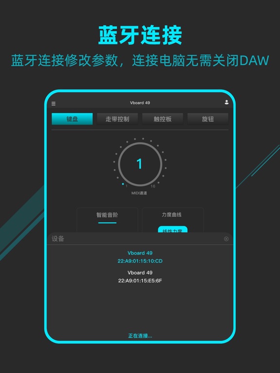 应用介绍 “MIDIPLUS 控制中心”是一款控制MIDIPLUS旗下产品属性的一款辅助APP,通过“MIDIPLUS控制中心”,可快速调节产品属性参数。 【键盘交互】目前以支持新概念折叠MIDI键盘——Vboard 49 【操作方便】通过“MIDIPLUS 控制中心”APP连接设备,可快速给设备调节参数 【蓝牙连接】“MIDIPLUS 控制中心”可以直接使用蓝牙连接设备,让设备在连接电脑不断联DAW的情况下,也可以快速进行参数修改 【云端保存】登陆账户后,可进行云端保存,无论以后是换了设备,或者是换了手机,都可以随时读取云端预设 “MIDIPLUS 控制中心”目的旨在让用户朋友更加快速使用MIDIPLUS产品,让用户在工作或者娱乐演奏时使用MIDIPLUS的产品能够更加得心应手。 我们非常欢迎各位用户朋友给我们提供更多宝贵的意见,有你们的支持我们才能做的更好。V1.1.1版本优化解决了一些已发现的Bug问题。