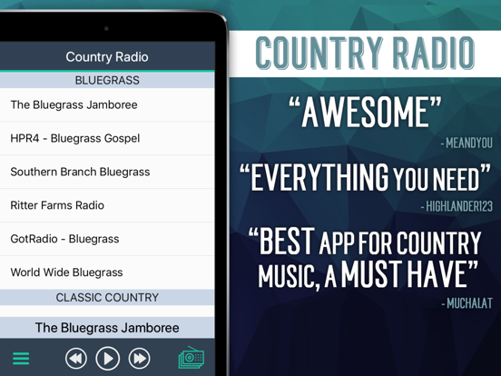 国家电台 - 热播美国广播电台音乐 提供下列电台: ********** Bluegrass ********** The Frontporch - Bluegrass World Wide Bluegrass HPR4 - Bluegrass Gospel Bluegrass Country AddictedToRadio - Bluegrass Meadowlark Jamboree ******** Classic Country ******** Highway 181 - Classic Country HPR1 - Tradional Country 1.FM - Classic Country AddictedToRadio - Classic Country Nashville Classics Country Classics 90's Country - 181.FM HPR2 - Today's Classic Country *********** Today's Hits ************ AddictedToRadio - Hit Kicker Average Joe's Radio Super Country Radio NBRN.FM Fire House Radio Hot n' Gold Radio Free Americana Kickin' Country - 181.FM Real Country - 181.FM US181 Hot Country Country 108 US Country 1.FM - Absolute Country Radio 1.FM - Country WQAH Pure Country America's Country CMR Hot CMR Nashville Europe's #1 Country The Country Stream High Desert Country Big Cactus Country AMPZ Country ********** Various Mix *********** Boot Liquor - Soma.FM Lonestar101 - Texas Country HPR3 - Indie Country AddictedToRadio - Cajun Fest Twang City NuMusic - Unsigned Country The Badlands Quebec-Country Cain FM All Rock Country AddictedToRadio - Ladies Of Country AddictedToRadio - Bar Rockin Country For more information, including Terms of Service & Privacy Policy, visit myindieapp.com. Thanks for listening! 请尽情享受!• Latest iOS Support • Bug Fixes & Improvements