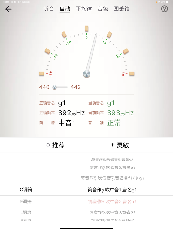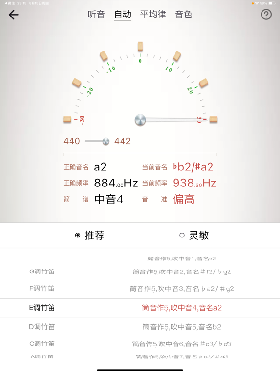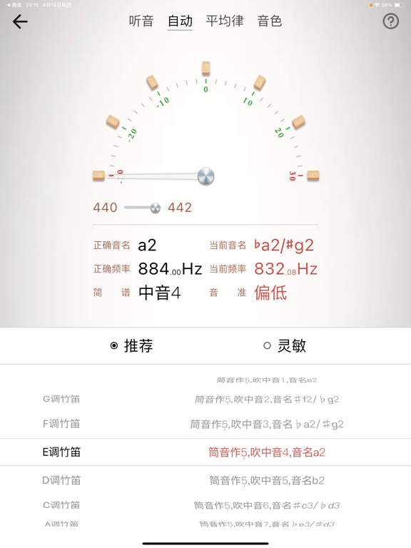 “竹笛调音器”App,是一款立足于解决中国民族乐器竹笛 校音/定调 的智能调音App。这款调音器完全根据竹笛的真实音色采样校对设计而成,调音识别的过程更加快速精准! App 软件有2大功能模块,分别是调音器、节拍器。 调音器,提供:听音模式、自动调音、十二平均律、调音色,共4种调音模式; 其中,听音模式,提供:竹笛、三十六簧笙、三角钢琴、扬琴,共4种基准音模式; 节拍器,提供:击鼓锤、打节拍、木鱼、踩镲、击鼓边,共5种节拍器音源。由软件代言人及艺术顾问,中国广播民族乐团著名打击乐演奏家吴晓甦精心录制而成。1、问题修复以及性能提升 2、优化用户体验
