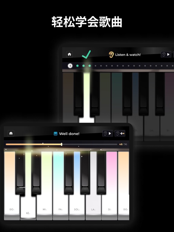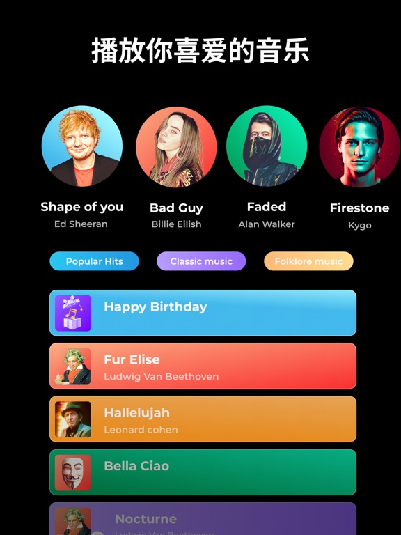 轻松弹奏钢琴,充满乐趣。无需任何经验,就能比以往更快地学习你最喜欢的歌曲 选择一种最适合你的方式来发现钢琴世界。 一种新的独特的学习钢琴的方法。 跳过理论,潜心实践。 通过观看和重复钢琴曲来学习记忆。通过敲击正确的音符来训练你的音乐听力。你会对自己的记忆力感到惊讶! 按自己的节奏学习,无论何时何地。 一个像大师一样弹钢琴的节奏游戏。 得益于具有高清音效的超逼真钢琴,你可以轻松弹奏名曲和经典歌曲! 通过专业音乐家创造的数百个关卡来挑战自己,提高自己的技能。提高你的节奏感,尝试完美地获得所有音符。 完成所有的关卡,并成为整个管弦乐队的一部分,这要感谢令人难以置信的音乐会模式。 播放你最喜欢的歌曲。 我们的目录每周都会有新的内容更新! 全球流行的热门歌曲,如Ed Sheeran的Shape of You, Sia的Chandelier, Alan Walker的Faded... 所有时间的经典歌曲,如莫扎特、贝多芬、巴赫... 释放你的创造力。 在键盘模拟器上自由演奏钢琴,你可以演奏任何歌曲和和弦。 我们的数字钢琴应用程序可以让你选择一些乐器的声音:从钢琴键盘和三角钢琴到大键琴和风琴。 主要特点。 - 2种游戏玩法。学习模式和游戏模式 - 超逼真的钢琴键盘 - 提高你的节奏技巧的关卡 - 在音乐会模式下弹奏钢琴,在管弦乐队中获得身临其境的体验 - 各种音乐歌曲。名曲、最经典的曲目、民俗歌曲 - 每周更新的目录 - 5种不同的键盘和乐器。大钢琴、复古钢琴、电子钢琴、教堂风琴、大键琴 - 节拍器和时间符号 高级版的好处。 高级订阅允许你访问所有目前和即将到来的高级功能,如不同的钢琴类型。它可以让你访问所有的高级和定期更新的钢琴歌曲。你也将拥有无广告的体验。 对该应用程序有任何问题或建议吗?我们的支持团队随时准备提供帮助:[support-piano@mwmapps.com](mailto:support-piano@mwmapps.com)。 Privacy Policy & Terms of Service: https://musicworldmedia.com/products/piano-keyboard/tosBug fixes and improvements.