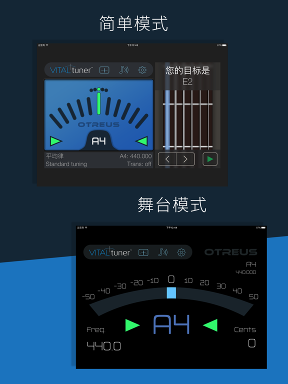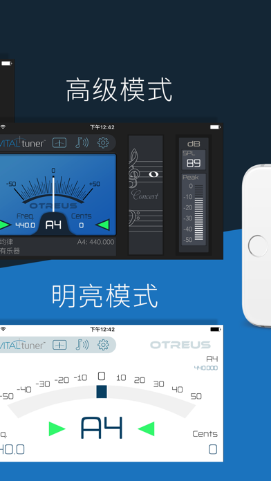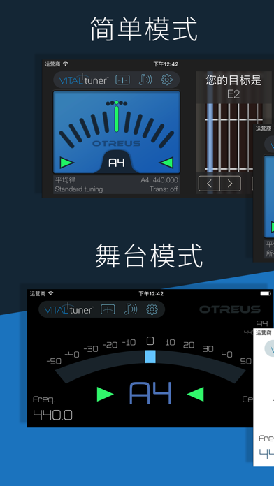 “我从来没有为一款调音器而感到如此激动兴奋。” – The Guitar Journal 无论是初学者还是经验丰富的职业演奏家,VITALtuner 都是给乐器调音的最理想之选。 为什么? 请仔细阅读,您保证不会失望! “吉他设置选项真令人兴奋不已...超棒的设计” – Guitar Adventures “极其准确,难以置信!非常易于使用,超级可靠…这是我用过的最好的一款应用” – 屡获殊荣的吉他演奏家 John Huldt “说实话,这是我见过的最好的调音器。 这技术令人难以置信!” “这款应用比其他应用好得多的多!” “VITALtuner 有一个幅度选项,这是其他任何调音应用所不具备的。 这款应用是所有相关人士的唯一之选” - App Store 评价 完整的调音解决方案 • 您刚买了第一个曼托林,不知道如何调音? • 要给吉他调音,与 Jimi 一起演奏吗? • 要登台演奏贝多芬的小提琴协奏曲吗? • 在录音室里,制作人需要对备用的班卓琴进行调音? • 想要了解如何对大键琴进行难以捉摸的调律? 有了 VITALtuner,上述情况均可轻松应对。 而且,您还可以做更多工作! 完美进行移动调音 VITALtuner 旨在提供无与伦比的专业调音准确度,您可以在任何音乐设置中轻松使用。 这是一款可用于所有乐器的真正通用的调音器,它拥有最先进的调音引擎,可覆盖幅度最大的音高范围。 从低音提琴的低音 C 到短笛的高音 C,都可以覆盖! 调音模式 - 四种调音器合而为一 4 种独特模式,可涵盖所有已知的音乐设置,无论您的技能水平如何。 • 高级模式 - 调音精度无与伦比,具有可流畅移动的虚拟指针,便于进行直观调音。 • 简单模式 - 非常适合初学者,可提供周到贴心的调音帮助。 虚拟 LED 可提供更为稳定的移动,方便您进行轻松快速的调音。 • 舞台模式 - 精度和外观与高级模式相同,但设计为从远处观看。 无论是在乐谱架上还是在舞台上,始终清晰可见。 • 明亮模式 - 设计用于室外。当阳光直射时会使屏幕太亮难于看清时使用此模式。 主要功能 • 调音引擎 - VITALtuner 独有最先进的数字信号处理技术。 精度和音高检测完全可以媲美价值数千美元的钢琴调音技师。 • 乐器调音 - 130 种标准和备用调音,涵盖 40 种乐器。 选择您的乐器和目标音调,“导音”功能将会帮助您进行调音。 • 变调 - 降调或用调音夹调音。 • 音乐会 A 校准 - 设置具有 3 位小数点精度的音乐会音高。 • Sweeter 调音 - 调音偏移量根据特定乐器量身定制,以生成更为平衡的音调。 • 调律 - 最大数量的经过彻底研究的历史和现代音律。 • 自定义偏移量 - 保存自定义调音偏移量。 添加您自己的音律和 Sweeter 调音。 • 音高生成器 - 使用熟悉的键盘布局播放高精度的参考音高。 反映 A4 校准和偏移量。 • 音乐会音高乐谱 - 查看以标准乐谱显示的检测音调。 • SPL(分贝)计 • 峰值计Apple 已更新此 App 以显示 Apple Watch App 图标。 • 修复了一些错误,这些错误可能会对使用不同小数点符号的区域的用户产生影响