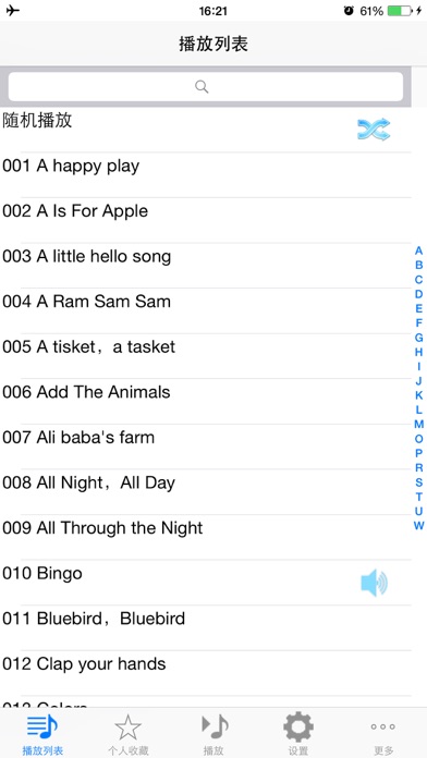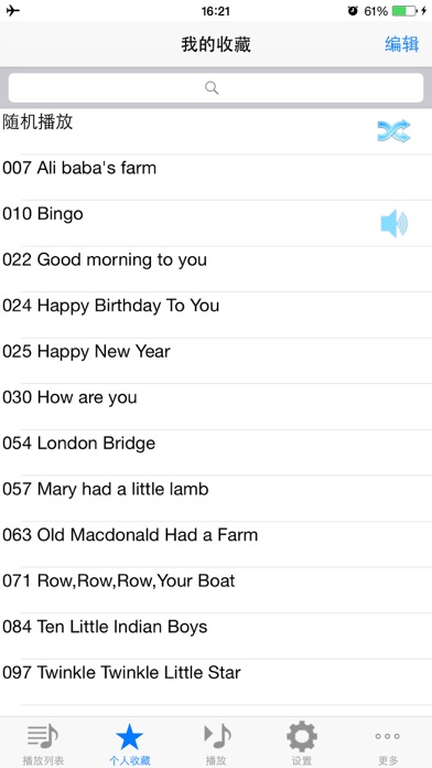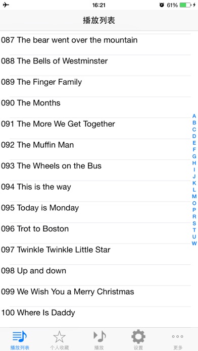 精选前100首孩子最喜欢的和最常听的英语儿歌,所有歌曲采用高品质音频,是您给孩子听英语儿歌的不二选择! 常听英语儿歌可以提高孩子英语听力,词汇量及语感,培养孩子学习英语的兴趣 下载安装软件后所资源已安装在本地,无需网络就可开始使用! 支持上一曲、下一曲、暂停、继续、拖动进度条调节播放位置,支持后台播放并支持iphone耳机的线控功能! 播放控制支持自动按顺序连续播放、单曲循环播放、随机播放并可在这几种方式间切换! 自动记录播放故事及播放位置,下次可继续播放! 支持收藏功能,您可把孩子特别喜欢的歌曲加入收藏,并可设置是否只在收藏歌曲中连续播放! 支持睡眠功能,可设置定时停止播放! 部分曲目: 010 Bingo 024 Happy Birthday To You 046 Jingle Bells 054 London Bridge 057 Mary Had a Little Lamb 063 Old MacDonald Had a Farm 071 Row,Row,Row,Your Boat 084 Ten Little Indian Boys 097 Twinkle twinkle little star Apple 已更新此 App 以显示 Apple Watch App 图标。 1、针对 iPhone6 和 iPhone6 Plus 优化 2、针对 iOS8 优化