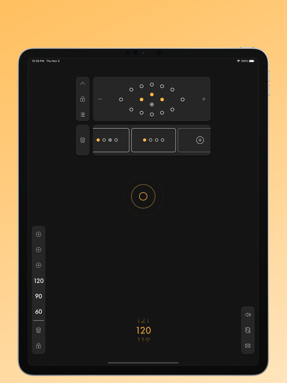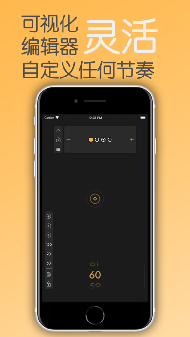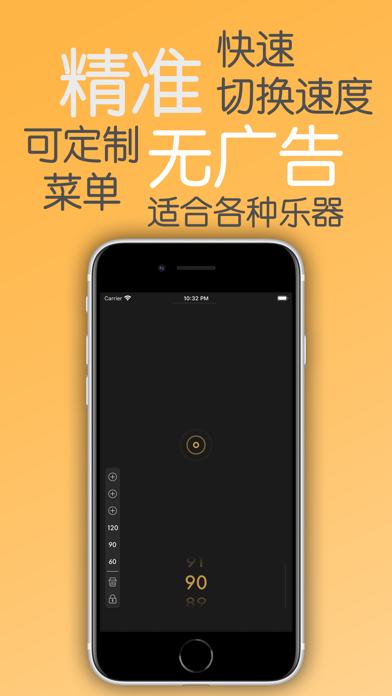 Maestro Metronome:轻便,灵活,专业的电子节拍器,比机械节拍器更精准,更方便。 专注 - 没有广告,最大限度精简的UI,一切的努力只为排除干扰,让您专注于练习本身。 便捷 - 操作简单,不需花费大量时间即可轻松驾驭。只需一按,“速度预设”可以让您轻松调整到常用的练习速度。当需要以不同速度练习内容时,这将极大地节约您调整的时间,将注意力集中在练习本身。 灵活 - 在轻量化的同时,我们赋予UI足够的灵活性,让您根据需求定制UI的展示与隐藏。 专业 - 没有固定的节奏限制,您可以在“节奏面板”自定义任何您需要的节奏,任何复杂的节奏都不在话下。初学者可以借此对节奏有更深的理解。“节奏预设”可以保存您创建的所有节奏类型,供您随时使用。 广泛 - 适用于各种乐器(钢琴,小提琴,吉他,萨克斯,口琴,尤克里里,鼓,古筝,二胡等)。适用于各种音乐类型(古典,摇滚,爵士,蓝调,民乐等)。甚至适合您的在跑步的时候使用。 其他: 最精准的节拍。 支持静音和震动,即便在嘈杂的环境中也可以使用。 支持锁屏/后台使用。