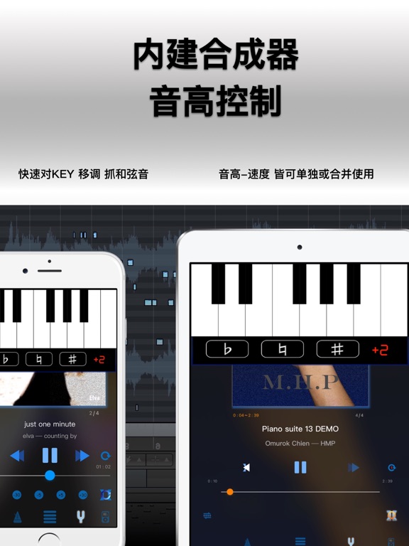 扒歌小帮手是一个免费的APP,提供了乐手、音乐工作者、音乐教师、学生、语言学习所最需要的音乐播放器功能。 它包含了 Hybrid Player里的强大功能: - 速度控制 - 转调功能 - 内建合成器 - AB反覆功能 - 视觉化节拍器 - 节拍侦测系统 使用简单,功能强大。音质继承了Hybrid Player中的先进核心 不管在处理前/后 都有令人惊艳的最高音质!Apple 已更新此 App 以显示 Apple Watch App 图标。 增加对先前iOS版本的支援(到iOS9.2版)