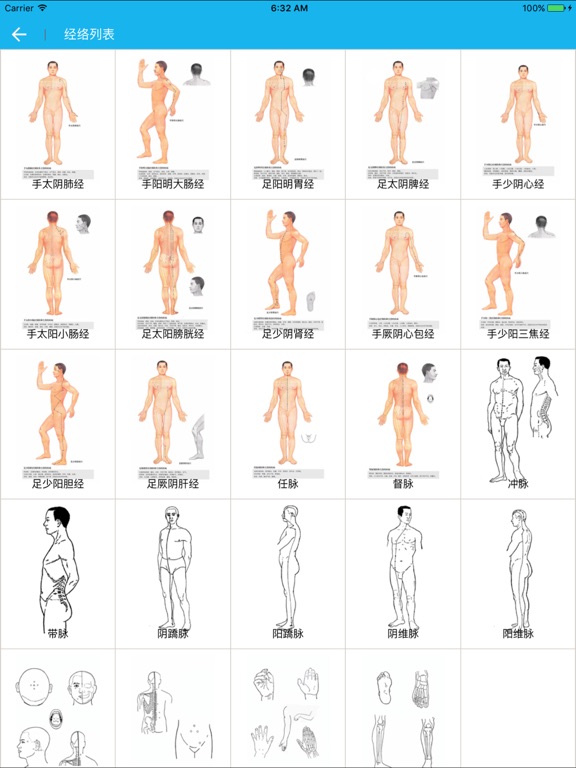 这是一个经典的中医经络学习软件和临床医生的工具软件,适合于中医学院的教师、学生、医务工作者、按摩师、注重养生保健的人士。 1、根据国家标准收录20条经脉(12条正经+8条脉)的穴位和经外奇穴(头面颈、躯干部和手、足部),包含经络的属性、主治范围和经络的当令时辰等信息。 2、支持显示12条正经和8条脉的循行路线图。 3、详细说明了408个穴位的注音、定位方法和定位图、主治范围、解剖原理、配伍、针灸方法、附注。 4、说明了每个经络的五输穴井荥输经合、母穴、子穴、原穴、俞穴、募穴、郄穴。 5、可以根据穴位关键词搜索、也可以根据疾病搜索相关的穴位。 6、可以显示当前的当令经络。 7、具有经络的相关口诀,并有语音朗读(女声),方便记忆。 8、动态显示巡行路线,并有语音朗读。 9、具有针灸姿势的图文说明。 10、支持iOS8.0及以上操作系统 网站支持 http://www.codeipad.net1、增加了经络循巡的古文描述; 2、扩大搜索框的文字的字体,方便查找