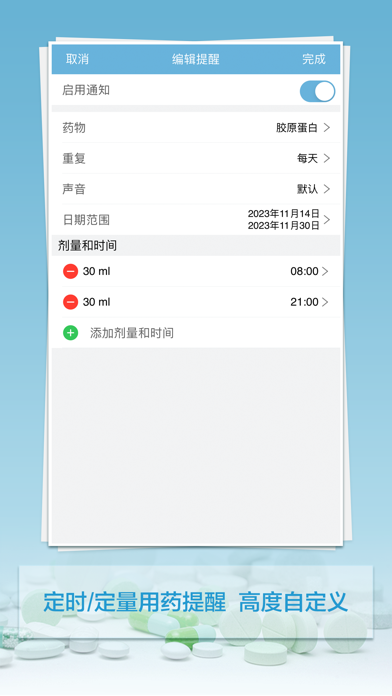 吃药了吗 旨在管理您的任何药物/药物,使用此应用程序按时服药,不要因为要做的事情太多或记性不好而再次错过服药。 每天在同一时间服药对您的健康有益,让 吃药了吗 提醒您何时该服药。 主要特征: ‐ 为每颗药丸安排无限提醒。 ‐ 客户提醒时间、重复日期和服药剂量。 ‐ 创建提醒,每天对一种药物进行多次提醒。 ‐ 无论您是否操作此应用程序,都会及时提醒您。 ‐ 在提醒时选择服药、跳过或暂停服药。 ‐ 如果您不方便吃药,请选择小睡时间。 ‐ 检查您当前的提醒和即将到来的提醒。 ‐ 每种药丸有十一种不同的提醒声音供您选择。 ‐ 全面管理您的药物信息:副作用、推荐剂量、单位、剂型、处方编号等。 ‐ 为每个药丸添加照片。 ‐ 保留、添加、编辑或删除您的服药历史记录。 ‐ 为服用的药丸条目添加注释。 ‐ 密码功能,保护您的信息。 ‐ 支持 Touch ID 作为密码。 ‐ 无需互联网连接。 ‐ 将服用的药丸日志通过电子邮件发送给您的医生。 ‐ 支持Wifi备份和恢复。 ‐ 支持iCloud备份和恢复。 ‐ 支持Dropbox备份和恢复。 ‐ 支持Apple Watch版本。 如果您有任何问题或建议,请发送电子邮件至我们的支持 userfeed@vip.tom.com 。⁃ 修复了一些小问题。