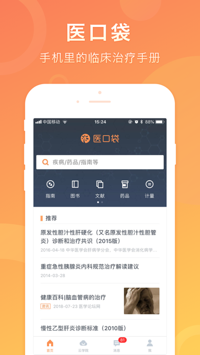 医口袋 - 手机里的医学资料库 无论您在临床出诊,还是科学研究,无论您身为西医、中医、还是即将步入杏林的医学生,它都是您贴身的得力助手。 每个版块都由专业团队精心打造: 【指南】最新权威临床指南、专家共识; 【图书】阅读正版专业电子图书; 【文献】获取疾病流病数据,订阅国内外期刊; 【药品】西药、中成药、中药、方剂一应俱全; 【计量】疾病分级、评分量表、用药计算器; 【课程】各大医院名医亲临授课解惑; 【病例】海量病例供您参考,疑难病症一起攻克; 【检验】各类检查项目,诊断畅通无阻; 【云学院】与同行切磋医疗经验、畅谈业内逸事; 杏树林旗下产品包含「医口袋」「病历夹」,一次注册全部通用。 杏树林 - 让您行医更轻松修复部分已知问题。