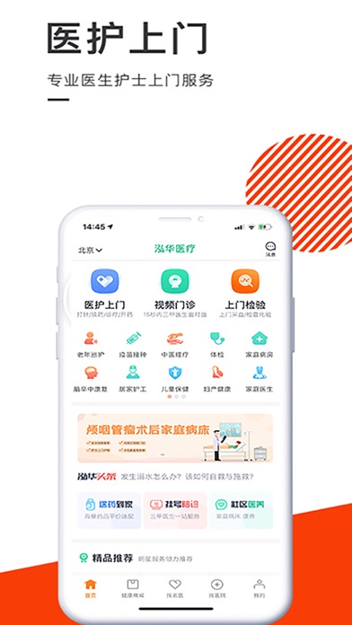 泓华医疗,是一家具有医疗机构执业许可证的正规线上医疗服务机构,具有国际标准的专业医护到家服务品牌。可随时在线预约名医专家、预约护士上门护理服务。 泓华的三大核心业务为:全国连锁医院诊所实体店;医护上门、(医生上门、护士上门)送药到家和视频问诊;互联网智能医疗健康SaaS平台。 泓华的医护上门(医生上门、护士上门)及送药到家服务已经遍布全国330多个城市2300个区县,医护上门、护工服务和24小时远程视频问诊结合,提供家庭病床、巡诊、居家康复护理、送药到家、老年健康定期巡护等服务,可大大提高患者康复效果和老人生活质量。 泓华运营以来,按照国际JCI标准,构建了以客户为中心的医疗安全质量服务体系,持续打造统一的客服、统一的物流、统一的结算系统、统一的信息化平台,实现了医疗健康服务的标准化和产品化,利用高端先进医疗设施设备和前沿技术,为国内外客户提供临床医疗、医护上门、视频问诊、送药到家、家庭护理、健康体检、私人医生、专家会诊、共享诊室、医疗救援、居家养老、慢病管理、健康管理、 海外医疗、健康保险、互联网智慧医院、互联网智慧药店、互联网智能养老平台、健康生活服务等,实现了医疗健康服务到店、到家、线上、线下一体化,提供一站式的温馨便捷、性价比高的普惠性全面医疗服务。 =====核心功能===== 医护上门-医生护士上门服务 全科医生上门服务、理疗师上门服务、中医专家上门服务、儿科医生上门服务、按摩师上门服务、外科拆线、安宁照护、家庭私人医生、家庭病床、医生视频问诊、护士上门打针、护士上门输液、护士上门换药(含PICC)、护士上门采血、护士上门吸痰、上门导尿、上门鼻饲、上门灌肠、上门雾化治疗、上门癌症护理、上门帕金森护理、上门糖尿病护理、上门糖尿病护理、上门产后母婴护理、上门催乳师护理等;我们的医护来自正规三甲医院,国家卫计委认证,随时为您提供上门护理服务; 《泓华医疗视频问诊》医生面对面解答您的健康难题 《家庭病床/老年健康巡护》 责任医师上门查房、专业护士上门服务、随时随刻视频问诊、随时查看病例档案,享受与住院同等服务 预约就诊-医生护士随时随地上门服务 =其他特色功能= 【健康档案】 【基因检测】 【健康体检】 【私人医生-专属你的医生】 【送药到家-全国送药上门】 联系电话:40060700991、优化用户体验 2、修复已知问题