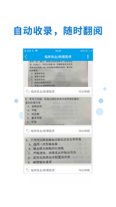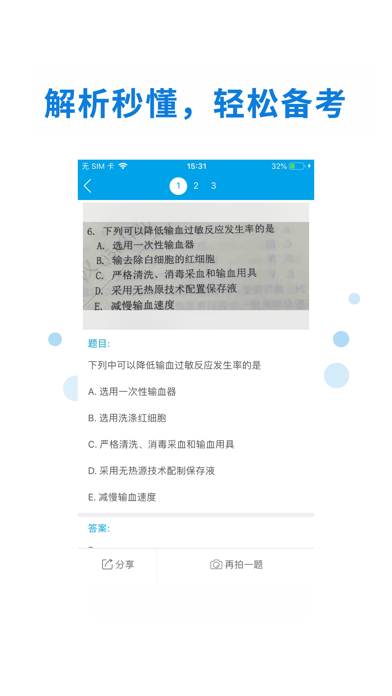 医考搜题专注于医学考试领域的复习辅助工具,考生使用医考搜题可以快速方便的通过题目拍照从海量的题库中搜索出题目答案与详细解析,提高考生复习或者学习效率。 医考搜题,拍一下,就学会!每个医学生使用的拍照搜题神器,海量题库,全面覆盖药师、中药师、西药师,医师资格(临床医师资格、中医医师资格、中西医医师结合、口腔医师资格、公卫医师资格、乡村全科助理等)、医师分阶段、住院医师、卫生资格(内/外/妇产/儿/全科主治医师、护师、主管护师、药士/师/主管、中药士/师/主管、检验士/师/主管)执业药师、执业医师、护士执业资格、健康管理师、公共营养师、心理咨询师等全科医学课程在内的主要学科。遇到不会做的题,轻松一拍,就能秒出详细解析,更有一线名师的视频讲解,让你搜索一道题,学会一类题! 任何学习上的难关,请联系医考搜题和你们一起解决: 官方网站:http://www.ahuyikao.com 客服微信:ahuyikao4 客服QQ:2134019248 商务拓展:bd@ahukeji.com解决了一些已知问题