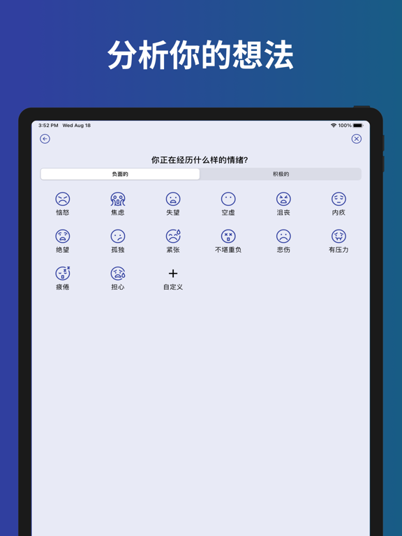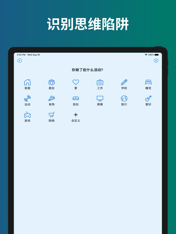 改善情绪的最佳日志应用程序 心情日记是有目的的日记:它借助认知行为疗法(CBT)、接纳与承诺疗法(ACT)、辩证行为疗法(DBT)以及积极心理学的有效工具,来帮助你改善情绪。 此应用程序可视为一个反思你的想法的地方,无论你的想法是积极还是消极的。记录你的心情,反思你的情绪,练习感恩,并用行之有效的技巧来分析你的想法。 思想日记将帮助你评估、了解并改变你的想法和感觉。通过使用此应用程序,你可以识别自己的情绪,分析自己是如何以及为什么会有这种感觉,挑战那些消极的信念,改变对于类似情景的思维模式,并记住积极的体验。 https://www.apple.com/legal/internet-services/itunes/dev/stdeula/修正了一些小错误