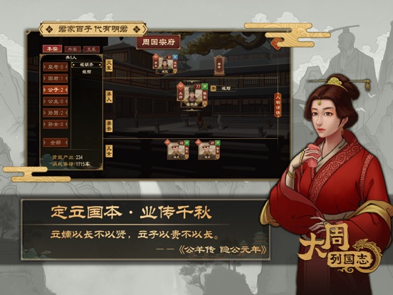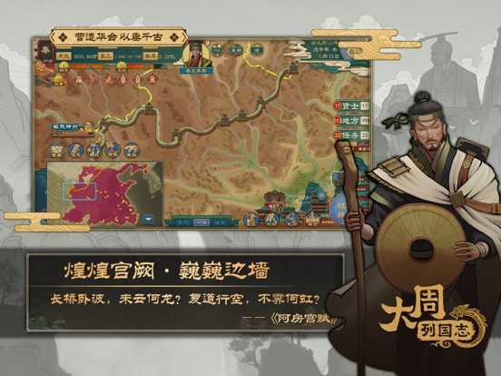 “社稷无常奉,君臣无常位,自古以然。高岸为谷,深谷为陵。三后之姓,于今为庶!” ——《左传 昭公三十二年》 这是一款以“涿鹿之战”到“楚汉争霸”的时间线为背景的历史策略-模拟经营游戏,再现了从华夏源初的上古战场,到礼乐文明的西周初年,再到礼崩乐坏的春秋乱世,以及战国纷争、秦出函谷统一六国,再到楚汉争霸、西汉初期数千年的宏伟历程。 天下大乱州牧并起之际,自可以毫无顾忌地逐鹿中原。但若生在一个天下初平、列国归心的礼乐之世,作为一方诸侯,又该用什么手段来发展壮大,实现自己“吞二周而亡诸侯”的野心呢? 挑战天子威权,压服列国,谋图霸者之业; 或是东出函谷,扫灭列国,坐拥六合之土。 霸王之路还是皇者之路,全在“君上”一念之间! 【剧本与AI】 ◆从武王伐纣至诸吕之乱,跨越近千年时间,最多时有数十个诸侯国并立,超过八百个城池,细致描画了那段历史风貌。 ◆AI的行为模式多元化,参照历史最大程度还原了百家争鸣与诸国征伐的沧海浮沉。 【王朝模式】 ◆王朝系统诠释了从礼乐之世到诸候征伐再到大一统的集权帝国的历史变迁。 ◆在不同纪元下,诸侯遵循的规则也不同,玩家真正代入到这时代中,并推动纪元变迁。 【百家争鸣】 以“百家争鸣”为核心,游戏内设计了儒、法、兵等九大文化流派。 ◆文化:诸候与地方城池都有着流派文化属性,其奉行的文化影响着上至国家发展方向、下至粮产兵员。甚至可以通过强大的文化影响力,吸引他国城池主动归降。 ◆国政:不同流派合计超过一百组的国政改革措施,践行政治理念和发展之路,引领百年革新潮流! ◆人才:不同流派的人才各有所长,不论是担任城守、朝臣;还是执行任务,均需要知才善任,才可以发挥其最大的效用。 【内政管理】 ◆典章国制:进行郡县制、郡国制等机制改革,以及三公九卿、内朝制等官制改革,定制国家的运行体系。 ◆宏观管理:调节税率、役率、水利、人口、城防、文化、农业建设、军事建设等,规划设定发展目标。 ◆城市特性:城市有不同地型和特性。有些城市关塞易守难攻,有些城市交通便利发展快速,有些城市水系发达利于发展农业… ◆地方治理:需要综合考虑和安排各城的经济发展、文化、治安、军备。 【外交谍报】 ◆外交:丰富的外交关系:宗主、附庸、盟友、仇敌等在推演中不断变换。涵盖联姻、宣战、结盟、威压等多达数十种外交选项,还原历史上的经典博弈。 ◆谍报:安插细作,建立情报网,天下事尽显眼底。刺杀、策反、煽动、妨碍...在游戏中体验“荆轲刺秦”。 【军事系统】 ◆战略:战略上,配合外交操作,合纵连横、远交近攻、围魏救赵等行为都能在游戏中实现。 ◆战备:征招预备役、扩充兵员、训练军队、设置兵种、列装军械。 ◆战斗:百变战场,多兵种大方阵配合作战,让玩家可以从大局着眼指挥作战。 ◆军将:时代背景下的将领体系,结合白起、韩信等历史上赫赫有名的将领人物,实现酣畅淋漓的征战。 【文物系统】 文物,是历史的见证者。文物,用沉默却又深沉的姿态站在历史长河中,记录下无数文明的点滴细节。 ◆高度还原历史长河中那些珍贵的文化瑰宝,在游戏中可以自由地打造、收藏以及养成,供奉文物可以获得对应的增益效果。 ◆通过局内随机事件可以发掘、获取文物,游戏过程增加更多未知性。 ◆占领城池、覆灭其他势力有机会获取对方的文物,乱世之下,怀璧有罪。 【奇观系统】 奇观,犹如中华大地上璀璨耀眼的明珠,长城、始皇陵、兵马俑...它们将宏伟与精致融为一体,如同一幅幅巍峨生动的艺术品,展现着古代文明的智慧与勇气。 ◆对历史奇观的深入探索考究,还原其历史背景与文化元素,古人的智慧结晶跃然于列国版图之上,彰显华夏历史文化的厚重气质。 ◆每座奇观都将带来独特的机制改变或属性提升,选择合适的城邑发起建造,为征战乱世提供更多可能性。 ◆覆灭势力,占领奇观,每一座建筑都将成为新的战略目标。 【传统古制】 在历史上,君王们经常自称“天子”,意为君权天授,为天之子,以此昭示正统性和权威性。对“天”、神明、宗祖的敬畏,是历史传统中不可缺少的内容。 ◆天命五德:五德之说由阴阳家邹衍提出,金、木、水、火、土五行看成五德,认为历代王朝各代表一德,按照五行相克或相生的顺序,交互更替。游戏内设计天命与五德系统,影响着王朝兴衰。 ◆祭祀系统:“国之大事,在祀与戎”。祭祀神邸,祈求粮食丰收、灾害消治,以保国泰民安。祭祀先祖列宗,彰显君主正统,以安朝堂太平。 【其他系统】 ◆随机事件:游戏中包含大量的随机事件,在游戏过程中体验时代的变化莫测。 ◆学宫辩论:还原百家争鸣的思想激辩,游戏中会不定期在不同流派间展开辩论。 ◆戎狄系统:玩家可以与戎狄以及西域、匈奴进行交好、征伐、可请援。为王朝体系下的局势环境增加了更多元素,也体现了民族、文化的融合。 ◆祖灵系统:可以通过攻占城邑、完成政策等行为来获得“授命”,使用“授命”点数发动卡牌,为己方势力带来即时性效果,例如直接完成组建军队、增加文化量以及特殊兵种的使用等。 ◆求学典籍:通过求学来习得人才的能力及智略,并为逝去的人才著书立传,传承遗志和学识。 ◆君王齐家:可以通过联姻、娶亲等方式壮大宗族、生育子嗣。同时对幼子、储君也可以进行