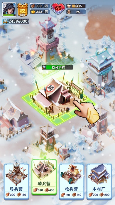 三国时期,群雄并起,战乱不断,人们生活在被冰雪覆盖的时代。在这个世界中,玩家作为城主,抵抗寒冬,平息战乱,在寒冬条件生存下去。 [建立城市:玩转民心系统] 民心即城主的满意度,通过妥善处理居民事件增加民心。高民心可使用民心技能,城池发展先人一步! [守卫城市:征兵买马] 建立兵营,招兵马买。 繁荣的城镇需要更强大的队伍来护卫,保卫城镇安全! [武将助阵:阵容组合] 招募三国武将,诸葛亮,赵云,吕布听您调遣,使用不同武将组合守卫城市。 [城市扩张:州府占领] 与其他志同道合的主公占领更多州府,成为最强城主。 你的城市是否能在寒冬战乱中生存下来? 来《三国:冰河时代》,体验前所未有的城主挑战!【新增内容】 新增-生日礼包 新增-双11礼包 【优化调整】 优化-聊天系统优化 -新增动态表情页签 -聊天频道新增帮助按钮 -聊天频道新增火炉等级成就达成时玩家祝贺功能 -全服广播道具新增1分钟冷却间隔 优化-三英战吕布活动优化 -活动时长从30分钟调整为20分钟 -集结时间从5分钟调整为3分钟 优化-挥师定山河活动优化 -迁移列表新增分类检索功能,方便天子对迁入人员进行管理 优化-全军备战活动新增增益奖励投放 -王朝动员阶段个人奖励新增锦囊·攻、锦囊·防、锦囊·破 -全军对峙阶段个人奖励新增讨贼·攻、讨贼·防、锦囊·命 调整-玩家对州府以及同一个玩家的主城侦查有5秒钟冷却时间