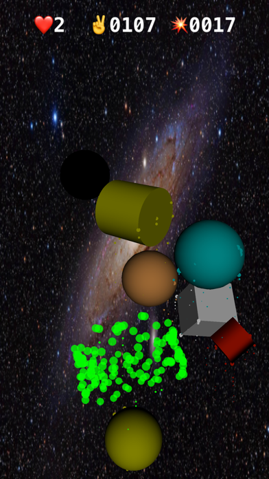 空间碰撞是一款简单有趣的手机应用游戏。触摸随机弹出的三维几何形状就会产生不同形状的爆炸并且得分。 Minor bug fix.