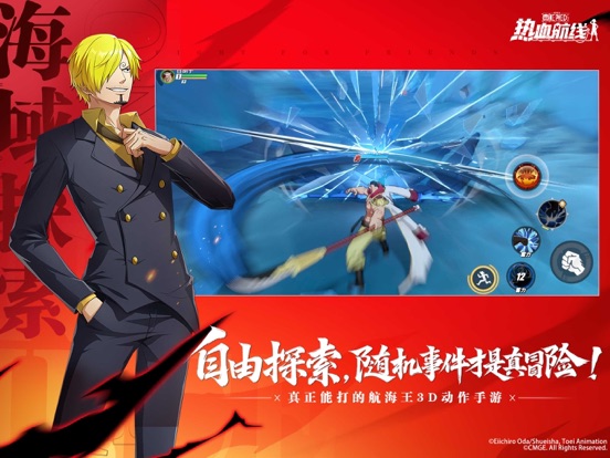 真正能打的航海王3D动作手游! 《航海王热血航线》是一款东映动画正版授权,千万海米首选! 游戏力求还原伙伴的技能设定和华丽特效,为玩家带来酣畅淋漓的动作体验,PVP竞技场放肆开打,全视角3D战斗霸气出招!在游戏中,你还可以重温原著动画剧情,收集超强力伙伴,自由探索奇幻海域,体验立体还原的沉浸式航海世界。 出发!“航海王我当定了!” 【正版还原】官方授权,海米首选标杆之作! 东映动画正版授权,极致还原伙伴的每个技能设定,打造酷炫华丽的战斗特效,带来热血畅快的动作体验……力求为玩家呈现出前所未有的高品质航海王IP手游巨作! 【热血动作】霸气出招,全视角战斗放肆开打! 我喜欢的伙伴怎能被动挨打,主动出击才是勇敢的海上战士!组合、连招、走位、出拳、释放……在竞技场酣畅战斗,享受动作爽感!1V1、3V3、阵营攻防、多人PK……即刻开打,秀出高光时刻! 【伙伴收集】强者登场,组建超能打航海团! 收集强力伙伴和心仪船只,随心组建最强航海团!在游戏对战中,玩家可以召唤喜爱的伙伴一同战斗——毕竟,并肩作战、才是伙伴的真正含义! 【3D全景】高精建模,航海世界触手可及! 还原度max,精细到每栋房屋,让玩家体验一个真实立体的航海王世界!完整海域地图、原版声优配音,仿佛裸眼穿越航海王世界,无论是阿拉巴斯坦的漫天黄沙,还是七水之城的粼粼波涛,尽在热血航线! 【海域探索】自由探索,随机事件才是真冒险! 航海王当然要自由冒险!超大海域,纵情航行,翻越颠倒山,飞上天空岛,探秘深海监狱,挑战海兽采集挖宝,触发随机新奇彩蛋!看到那根晃动的指针了吗?那就是冒险的下一个目的地! —联系我们— 官方抖音:航海王热血航线 官方微信:航海王热血航线 官方微博:航海王热血航线 官方频道:航海王热血航线官方频道 官方交流群:796535206 ©Eiichiro Oda/Shueisha, Toei Animation ©CMGE. All Rights Reserved.全新活动 「鬼岛决战」主题活动全面上线! 全新功能 「顶尖决战」巅峰赛来袭,重燃热血竞技场! 「海岛争霸」全新360度视角解锁,体验大战场刺激!