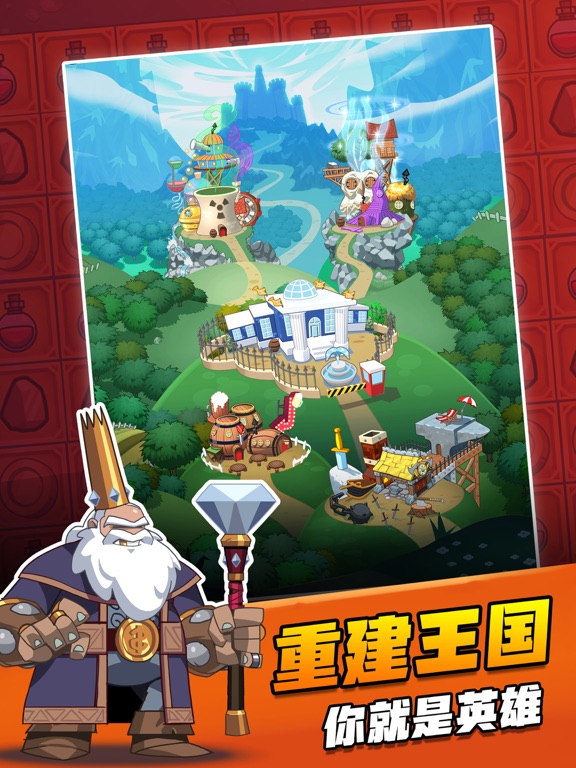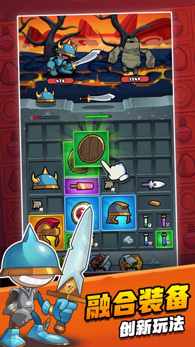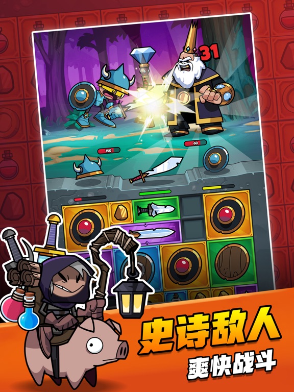 邪恶之王摧毁了和平的罗托帕村庄!幸运的是,村民们选择了你,英雄,作为这场史诗般的战斗、拯救村庄和重建王国的志愿者。 但是魔法诅咒正在使整个王国的所有武器和盔甲迅速崩溃,没有时间闲置!收集任何你能抓到的装备,在飞行中合并装备,储存黄金, 并在这个快节奏的拼图游戏中攻击一切。一个有趣的街机冒险等着你,好骑士!你和你的剑能在一切都崩溃之前完成成为“战利品之王”的任务吗? 游戏玩法 合并,抢劫,战斗,重复 -合并项目升级你的装备:腾出空间,制造令人敬畏的盔甲和强大的剑。 -点击装备您的骑士,准备史诗般的战斗与强大的怪物。 -收集大范围的装备,因为你的骑士会自动攻击他,来攻击幻想敌人。修复问题,优化用户体验