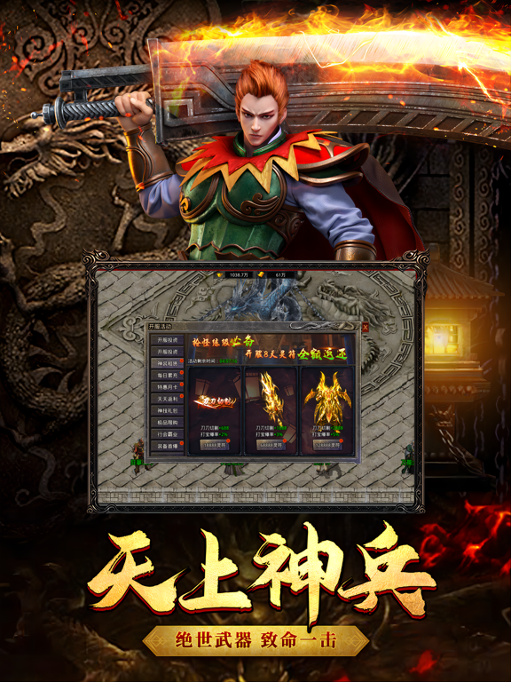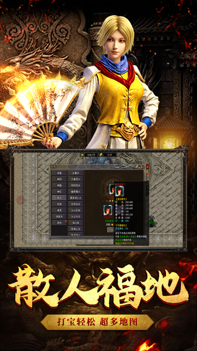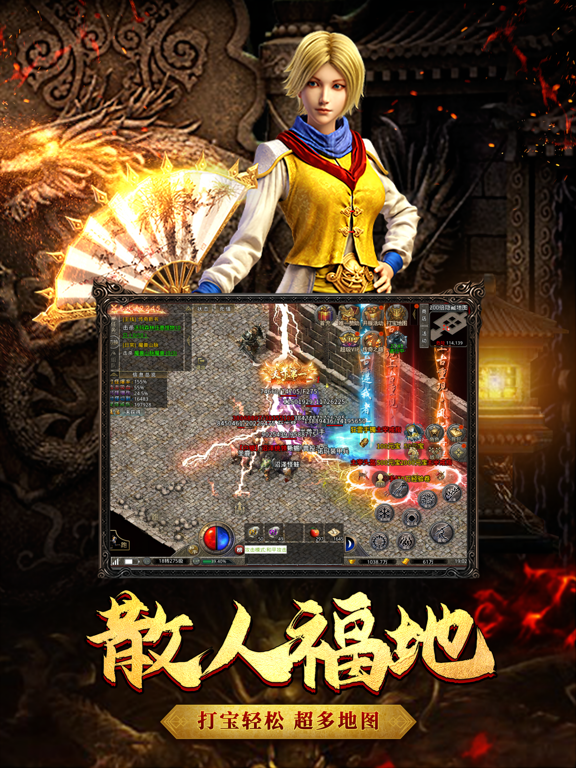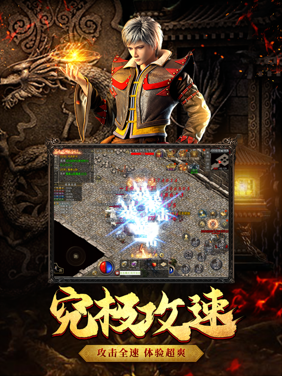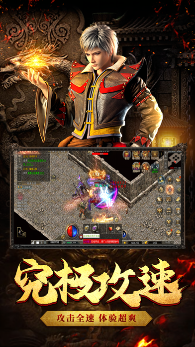 1.76满攻速复古玩法,畅爽体验! 经典三职业,搭配全新攻速版本,不一样的快感! 特色异火,散人天堂,装备进阶,铸造极品! 超级坐骑,神兽降临,特色地图,视觉体验! 经典攻城,兄弟集结,沙城打破!